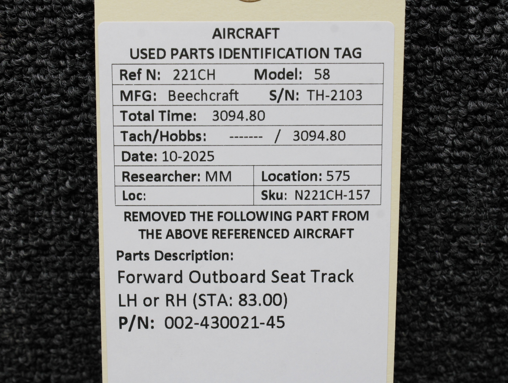 Unless specifically noted, most of our used airplane parts are sold in the condition they were removed, which means you should expect the usual signs of wear and tear.