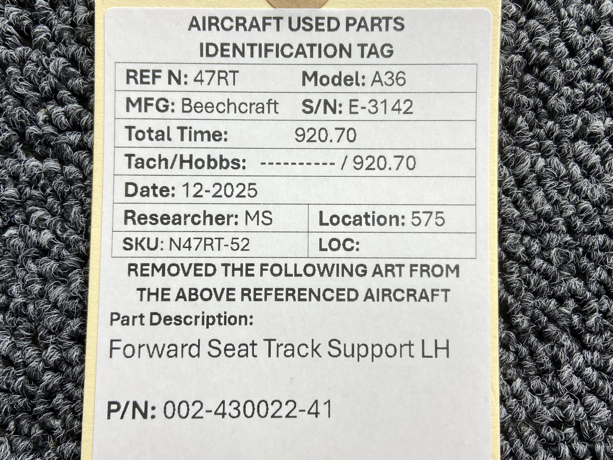 Unless specifically noted, most of our used airplane parts are sold in the condition they were removed, which means you should expect the usual signs of wear and tear.