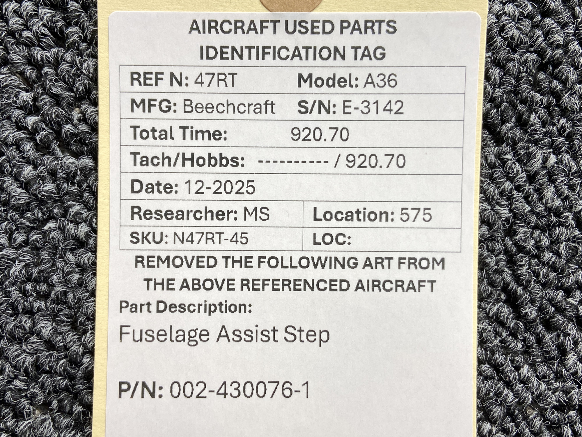 Every part is carefully inspected throughout our process and several times before it goes online. Most items are sold as-removed, just as they came off the aircraft. These parts are not functionally tested. What we do provide is clear photos, full traceability when available, pricing that reflects the as-removed condition, and a no-nonsense 90-day return window.