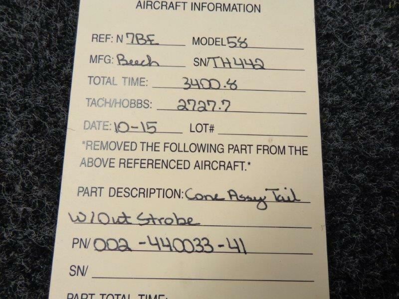002-440033-41 Beech 58 Cone Assy Tail W/ Out Strobe