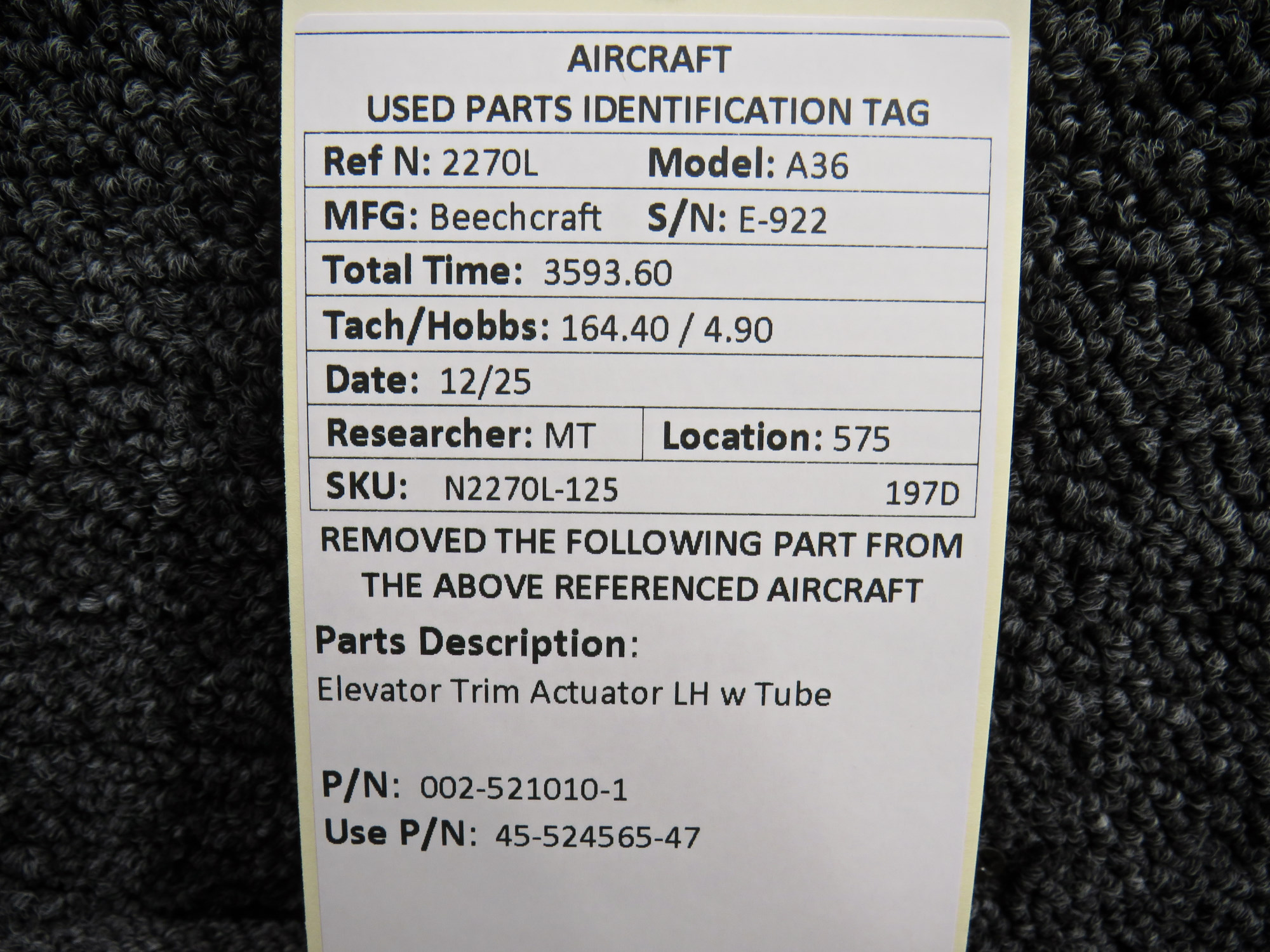 Unless specifically noted, most of our used airplane parts are sold in the condition they were removed, which means you should expect the usual signs of wear and tear.