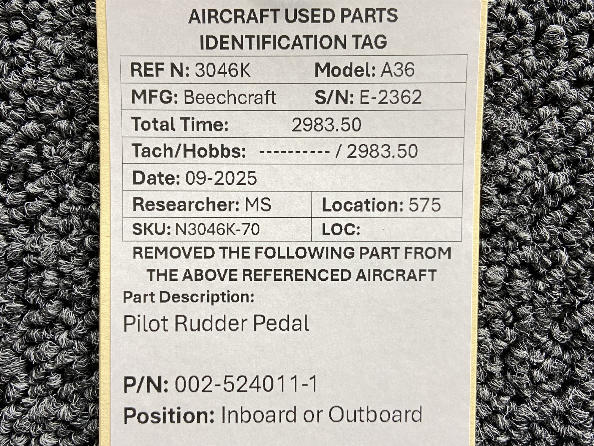 Unless specifically noted, most of our used airplane parts are sold in the condition they were removed, which means you should expect the usual signs of wear and tear.