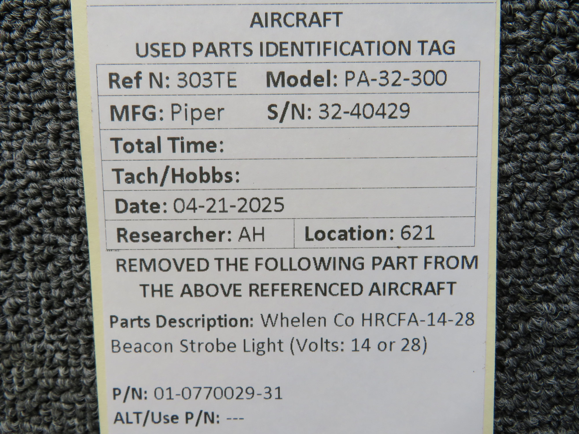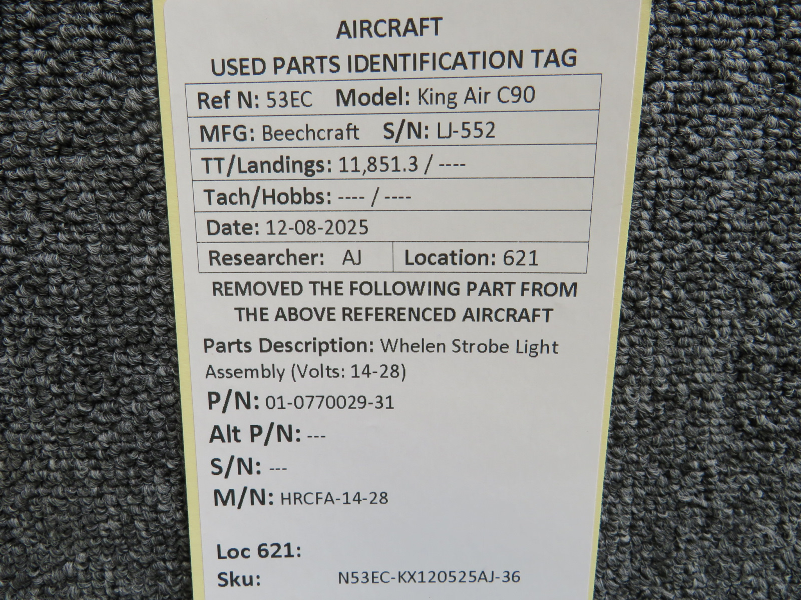 Unless specifically noted, most of our used airplane parts are sold in the condition they were removed, which means you should expect the usual signs of wear and tear.