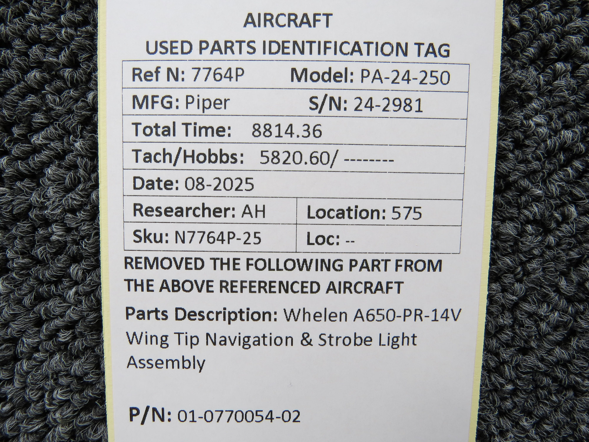 Every part is carefully inspected throughout our process and several times before it goes online. Most items are sold as-removed, just as they came off the aircraft. These parts are not functionally tested. What we do provide is clear photos, full traceability when available, pricing that reflects the as-removed condition, and a no-nonsense 90-day return window.