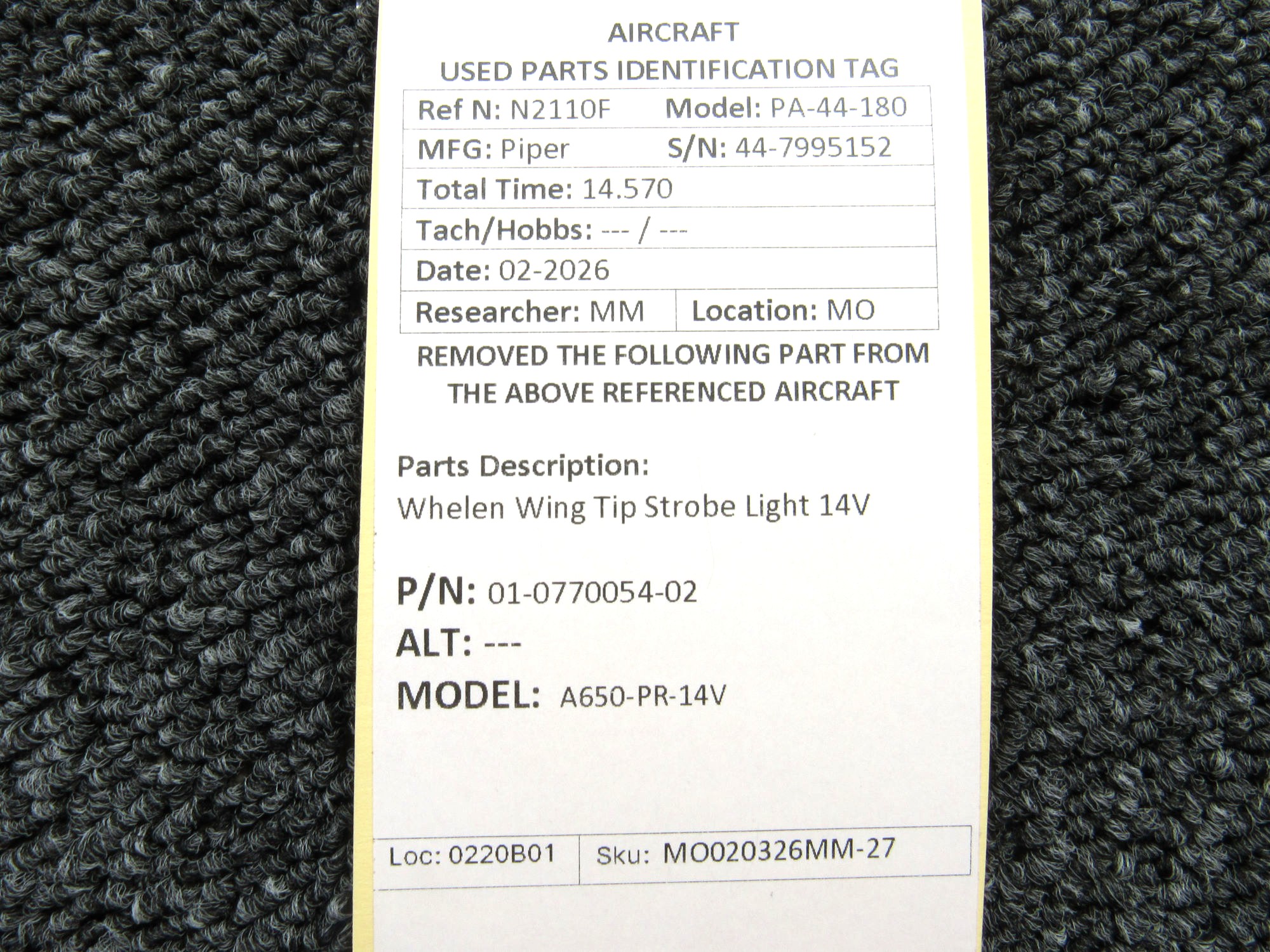 Unless specifically noted, most of our used airplane parts are sold in the condition they were removed, which means you should expect the usual signs of wear and tear.