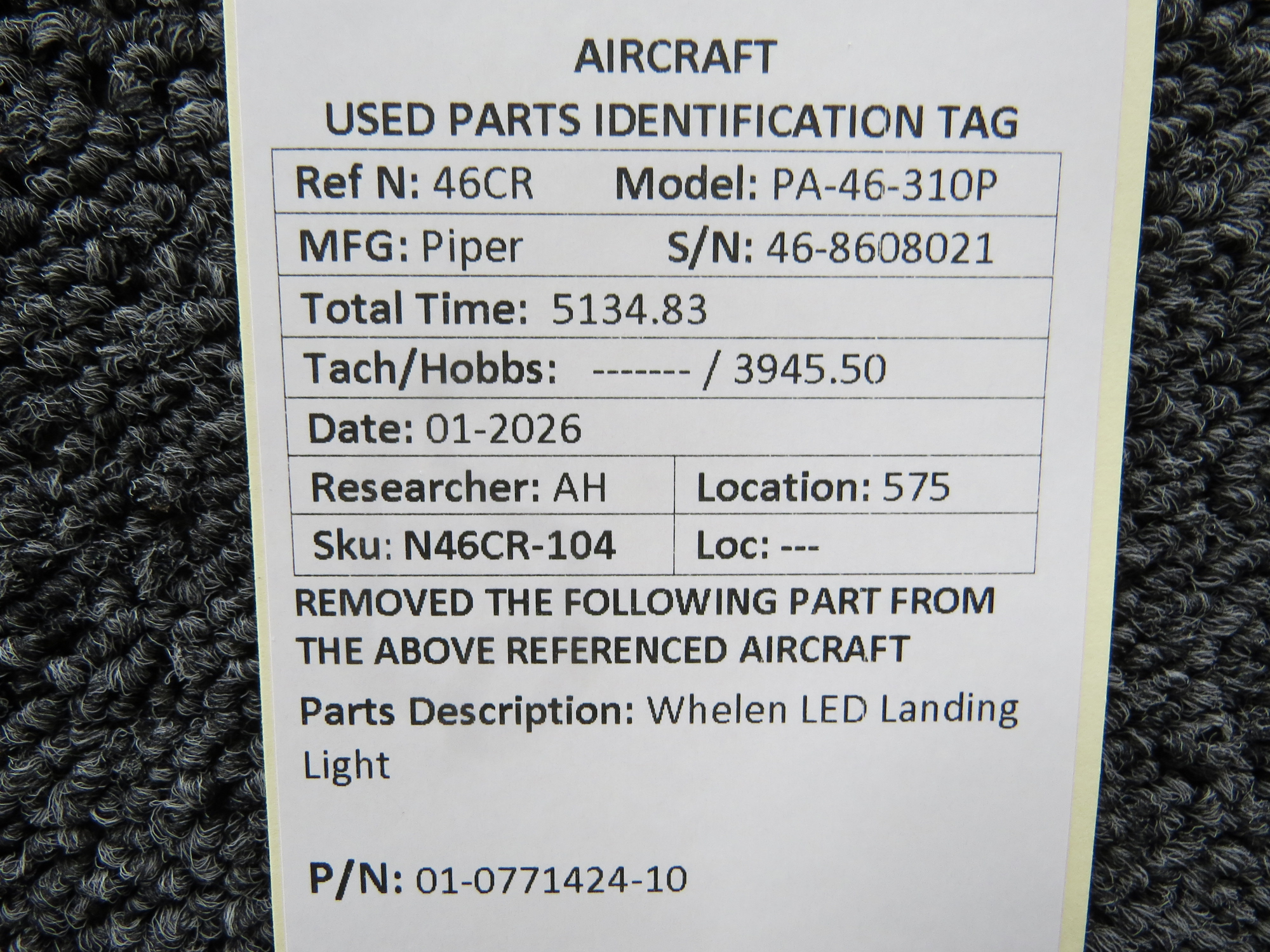 Unless specifically noted, most of our used airplane parts are sold in the condition they were removed, which means you should expect the usual signs of wear and tear.