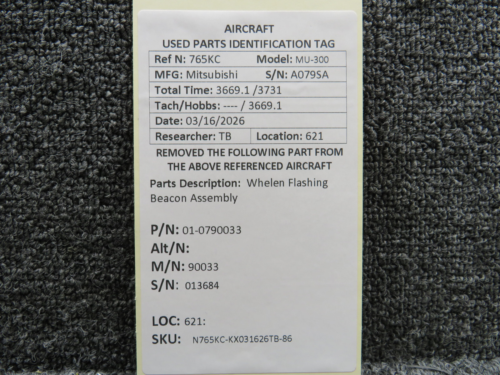 Every part is carefully inspected throughout our process and several times before it goes online. Most items are sold as-removed, just as they came off the aircraft. These parts are not functionally tested. What we do provide is clear photos, full traceability when available, pricing that reflects the as-removed condition, and a no-nonsense 90-day return window.
