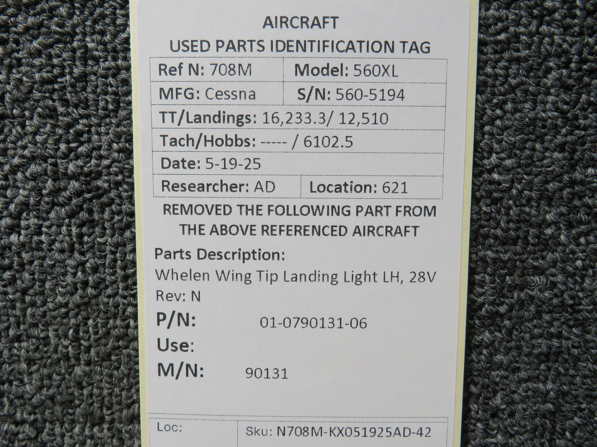Unless specifically noted, most of our used airplane parts are sold in the condition they were removed, which means you should expect the usual signs of wear and tear.
