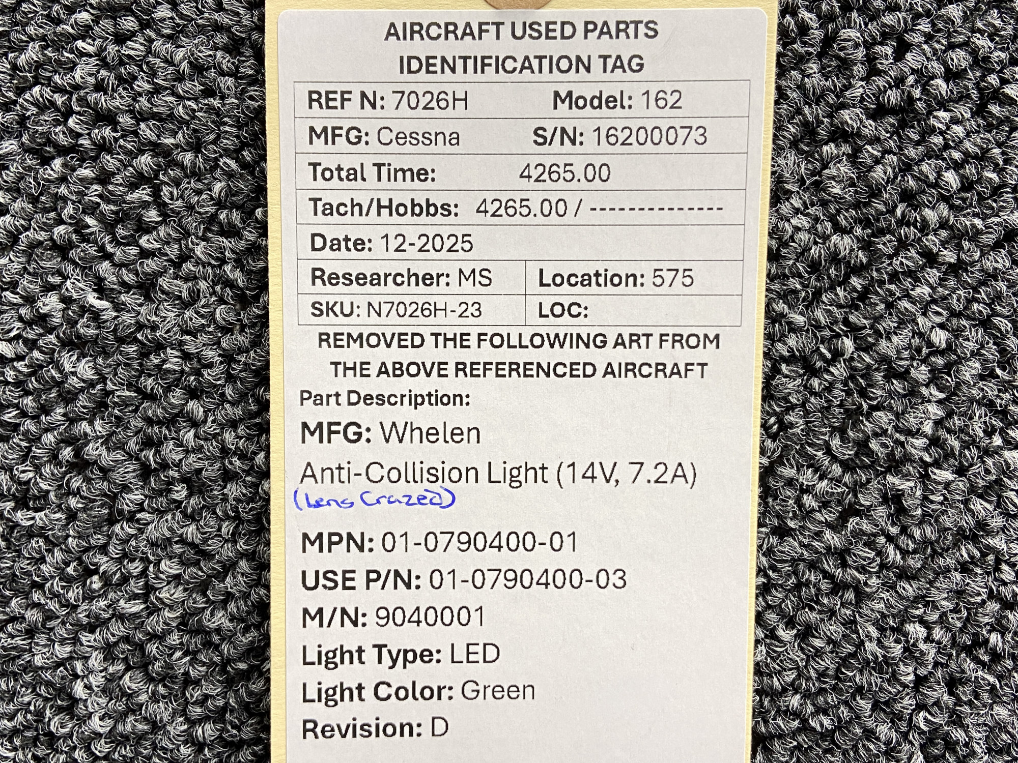 Unless specifically noted, most of our used airplane parts are sold in the condition they were removed, which means you should expect the usual signs of wear and tear.