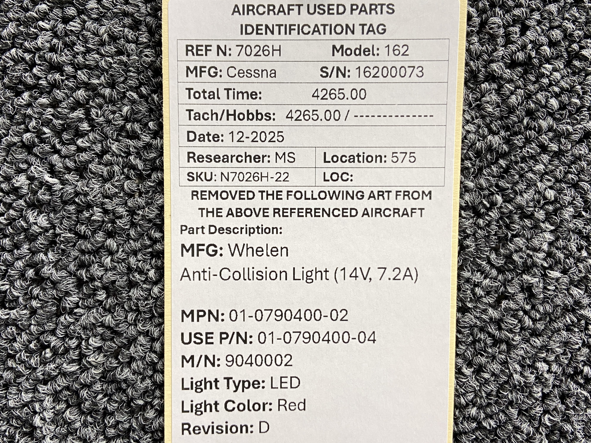 Every part is carefully inspected throughout our process and several times before it goes online. Most items are sold as-removed, just as they came off the aircraft. These parts are not functionally tested. What we do provide is clear photos, full traceability when available, pricing that reflects the as-removed condition, and a no-nonsense 90-day return window.