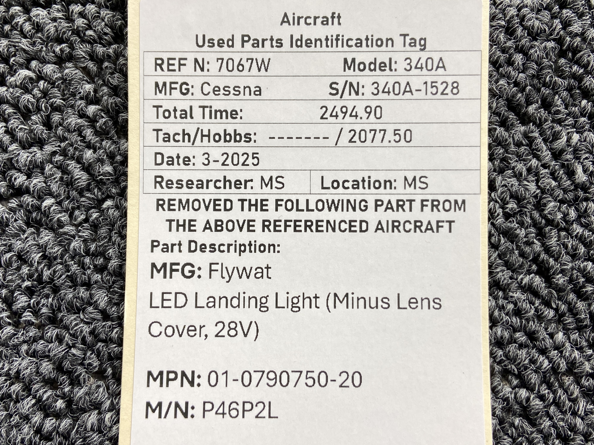 Unless specifically noted, most of our used airplane parts are sold in the condition they were removed, which means you should expect the usual signs of wear and tear.