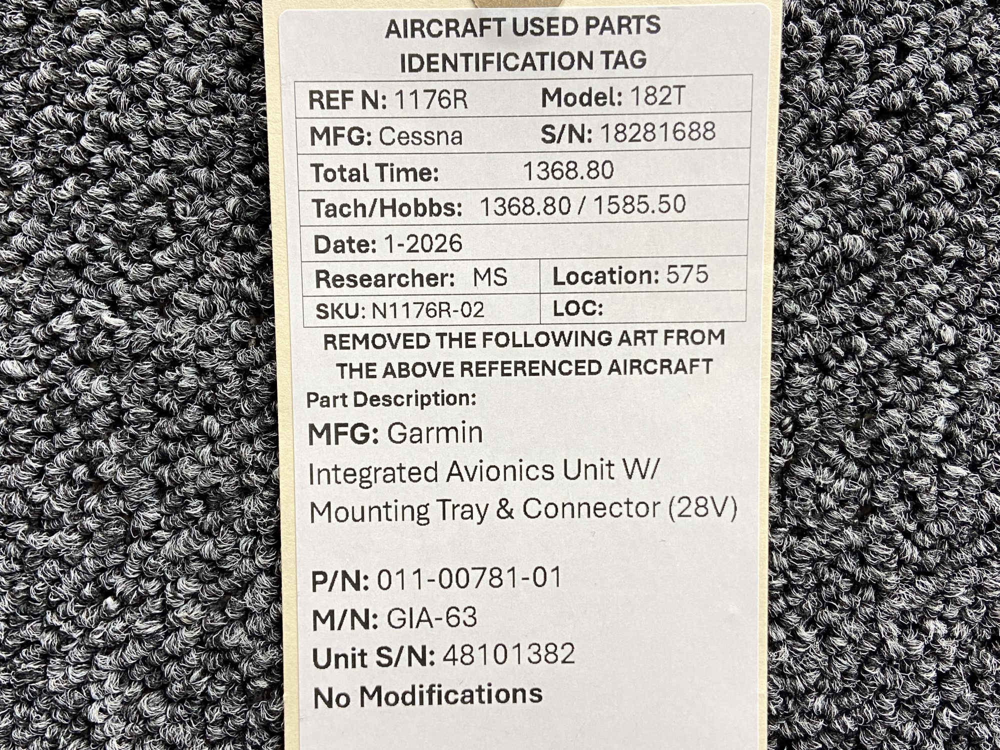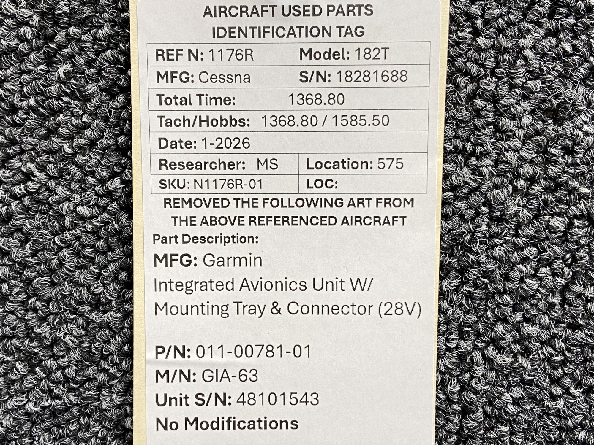 Unless specifically noted, most of our used airplane parts are sold in the condition they were removed, which means you should expect the usual signs of wear and tear.