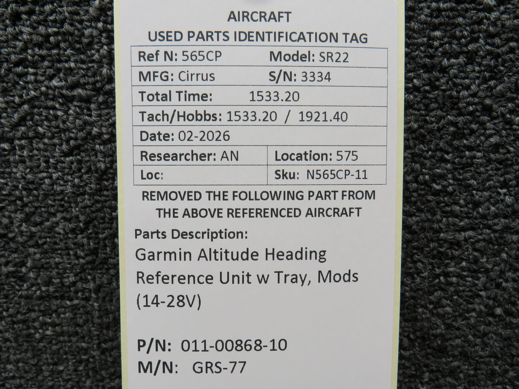 Every part is carefully inspected throughout our process and several times before it goes online. Most items are sold as-removed, just as they came off the aircraft. These parts are not functionally tested. What we do provide is clear photos, full traceability when available, pricing that reflects the as-removed condition, and a no-nonsense 90-day return window.