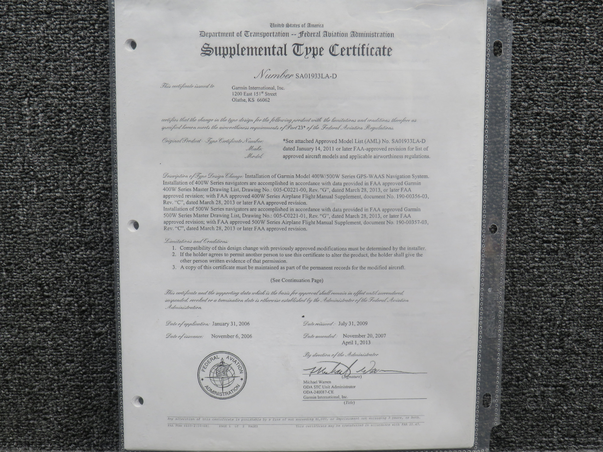 - STC Number: SA01933LA-D
