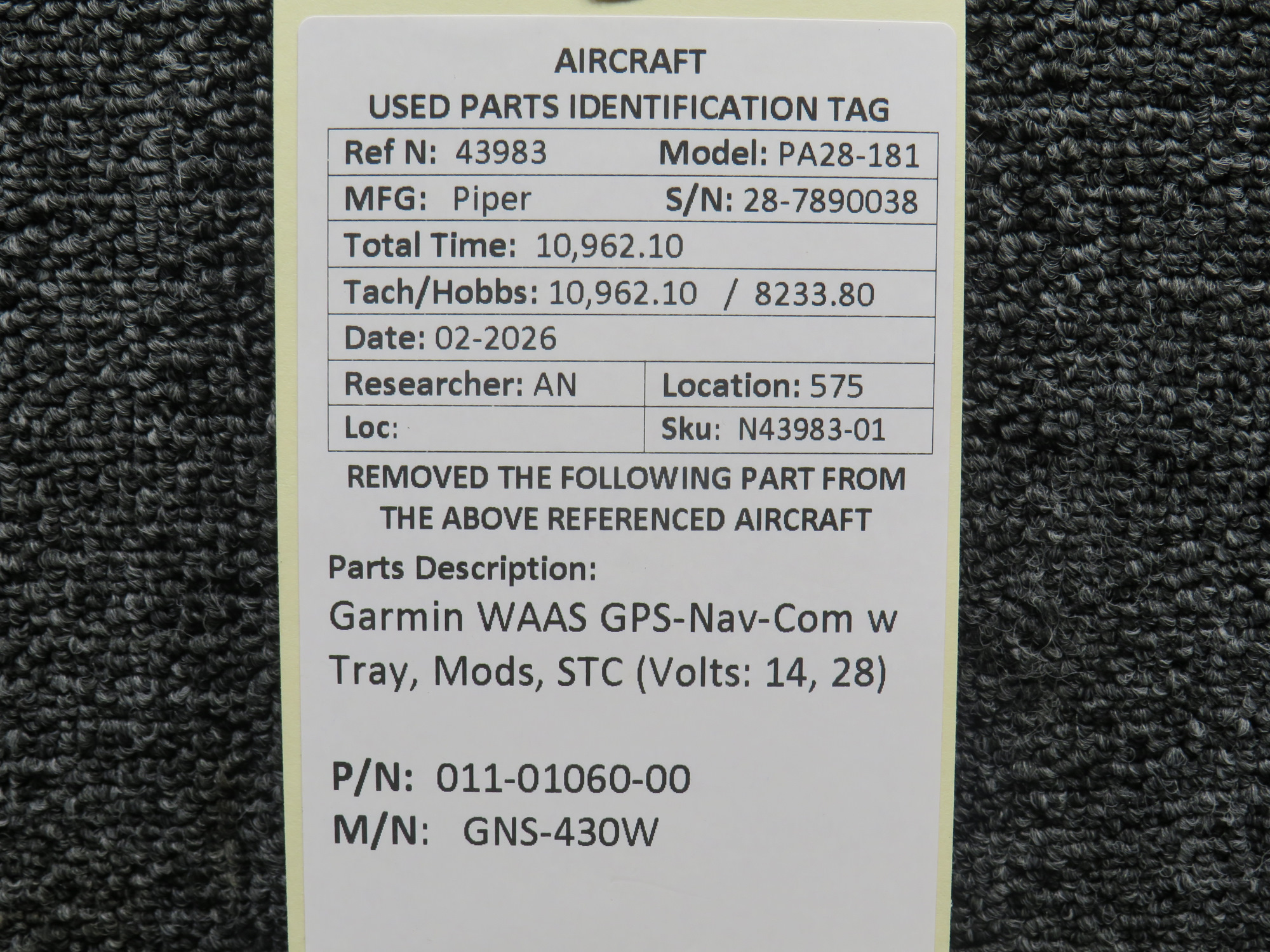 Unless specifically noted, most of our used airplane parts are sold in the condition they were removed, which means you should expect the usual signs of wear and tear.