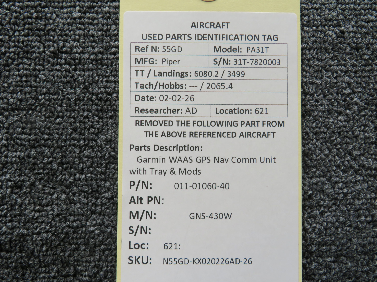 Unless specifically noted, most of our used airplane parts are sold in the condition they were removed, which means you should expect the usual signs of wear and tear.