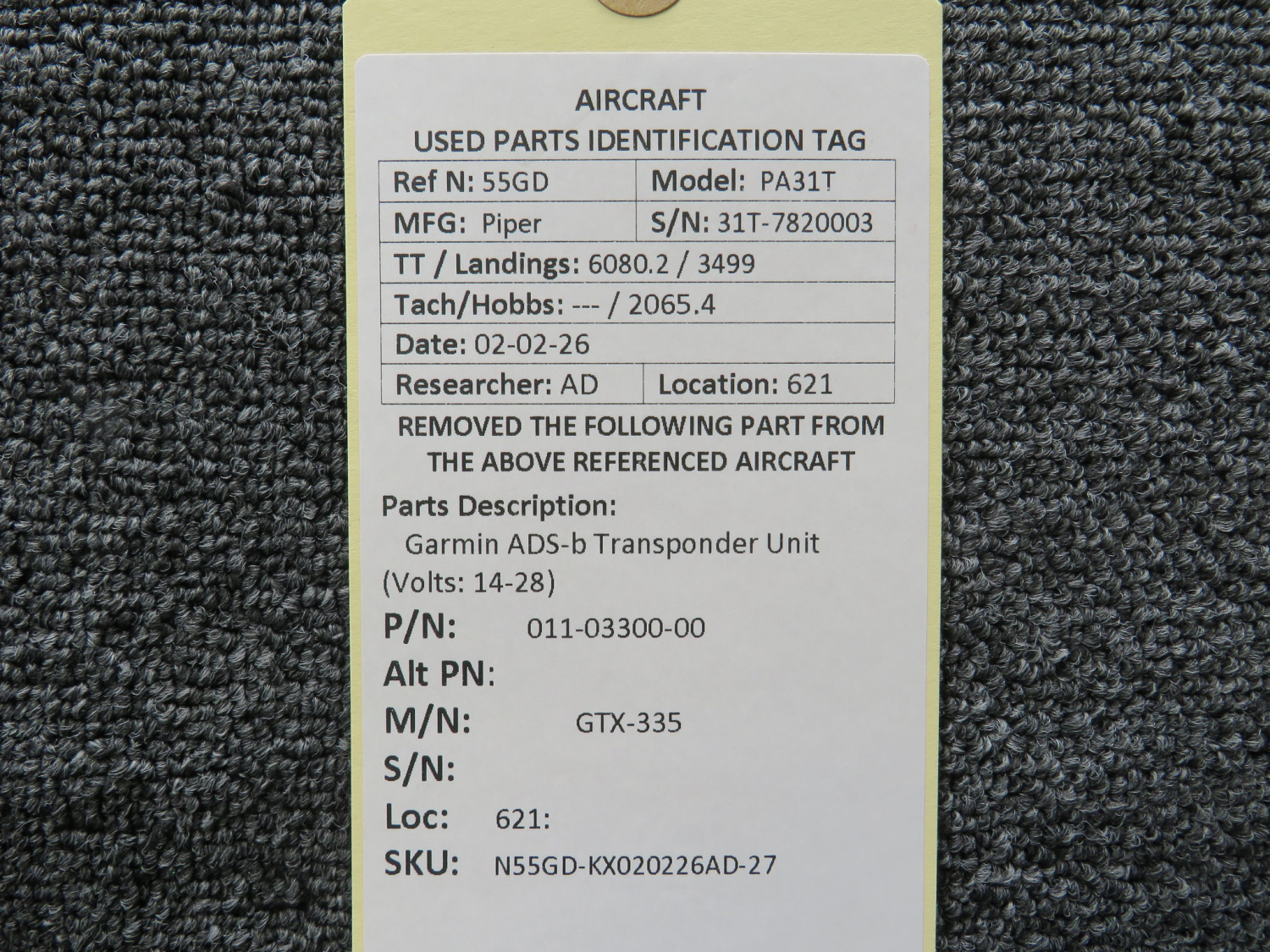 Unless specifically noted, most of our used airplane parts are sold in the condition they were removed, which means you should expect the usual signs of wear and tear.