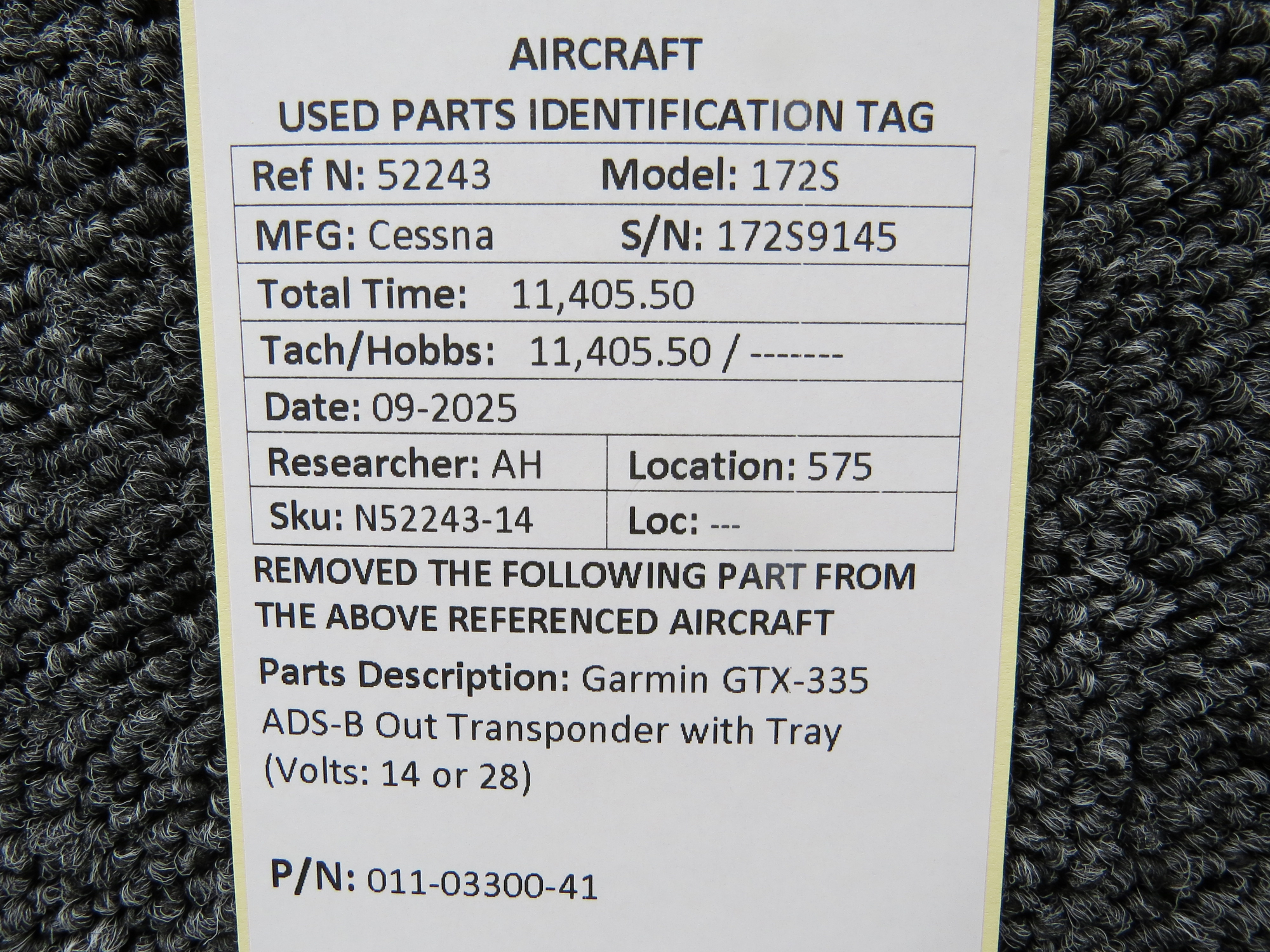 Unless specifically noted, most of our used airplane parts are sold in the condition they were removed, which means you should expect the usual signs of wear and tear.