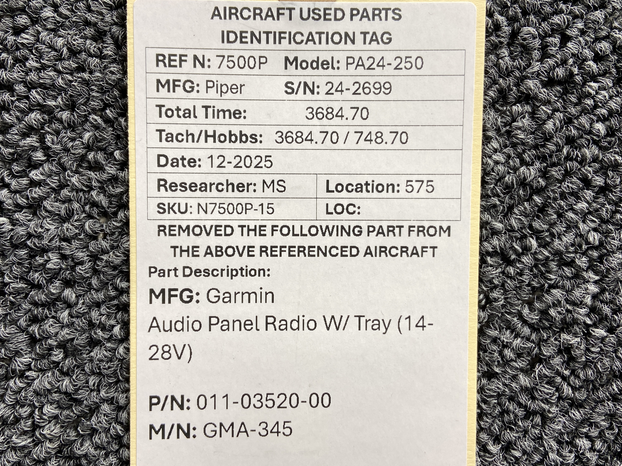 Unless specifically noted, most of our used airplane parts are sold in the condition they were removed, which means you should expect the usual signs of wear and tear.