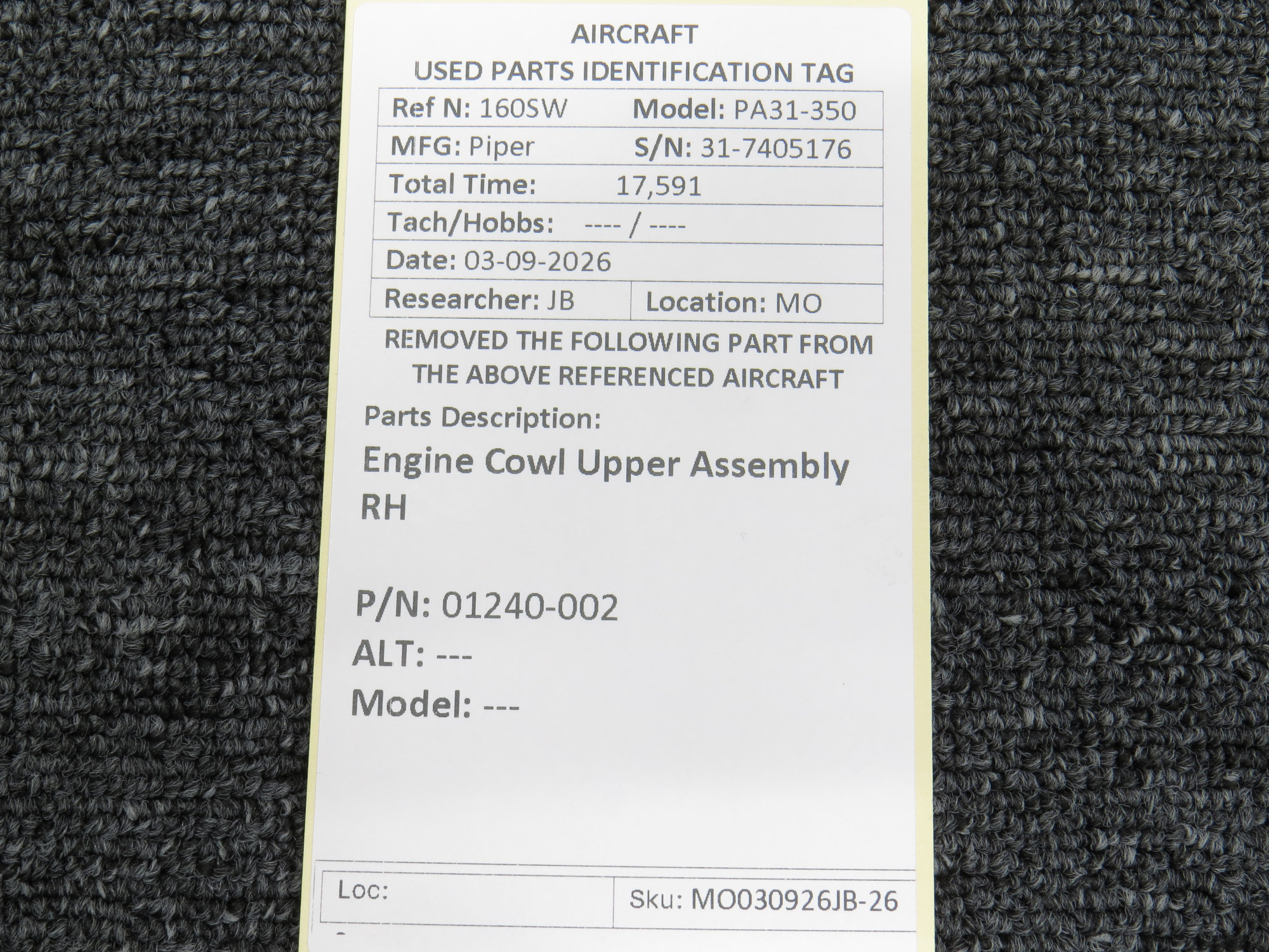 Every part is carefully inspected throughout our process and several times before it goes online. Most items are sold as-removed, just as they came off the aircraft. These parts are not functionally tested. What we do provide is clear photos, full traceability when available, pricing that reflects the as-removed condition, and a no-nonsense 90-day return window.