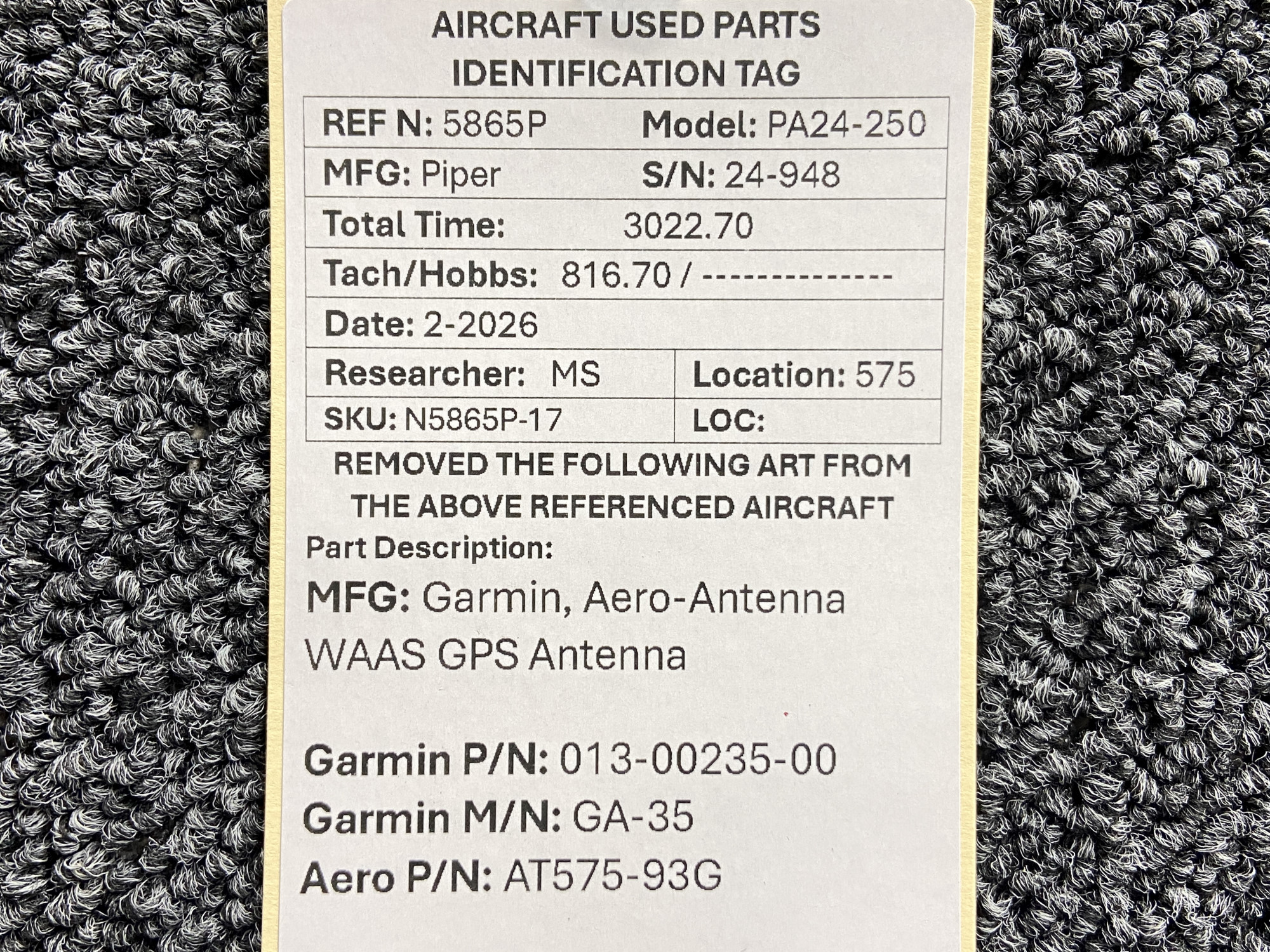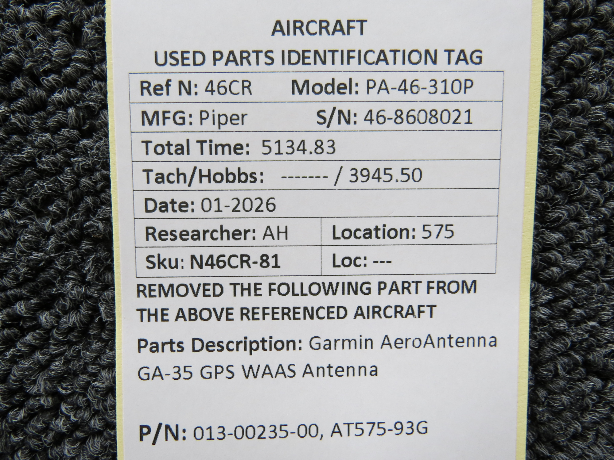 Unless specifically noted, most of our used airplane parts are sold in the condition they were removed, which means you should expect the usual signs of wear and tear.
