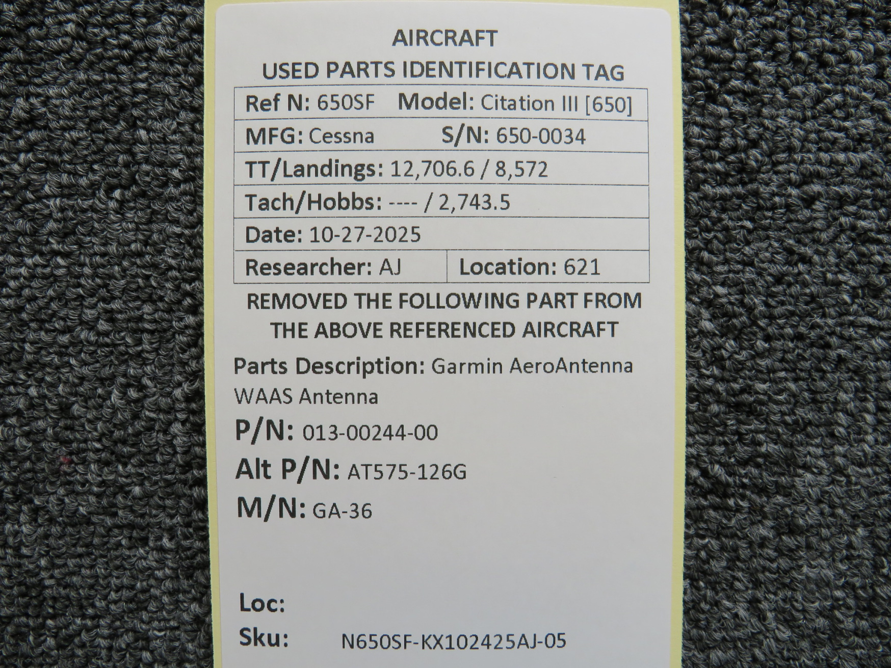 Unless specifically noted, most of our used airplane parts are sold in the condition they were removed, which means you should expect the usual signs of wear and tear.