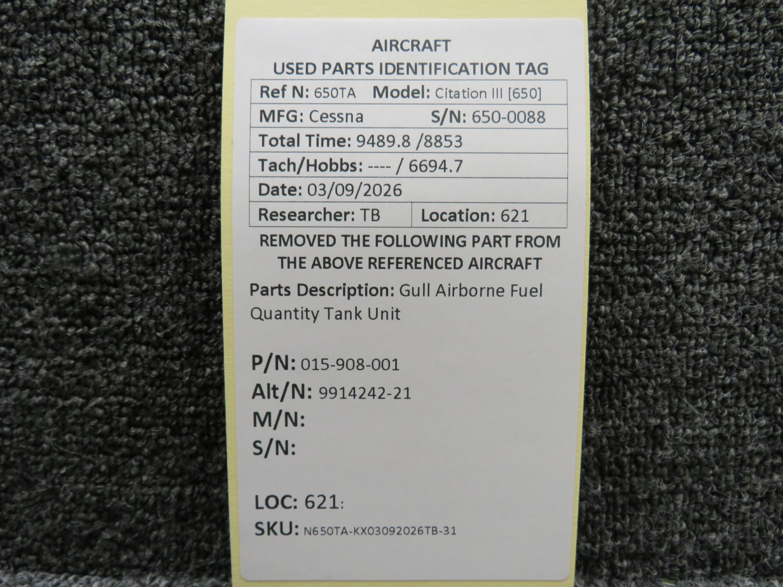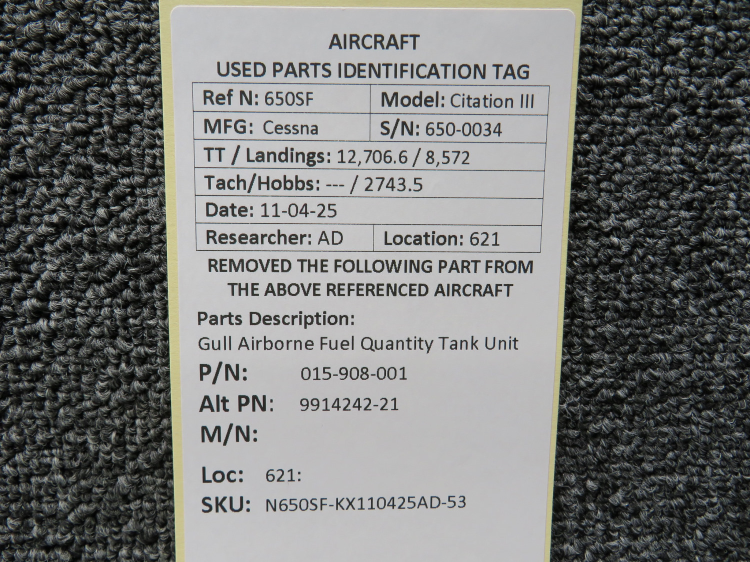 Every part is carefully inspected throughout our process and several times before it goes online. Most items are sold as-removed, just as they came off the aircraft. These parts are not functionally tested. What we do provide is clear photos, full traceability when available, pricing that reflects the as-removed condition, and a no-nonsense 90-day return window.