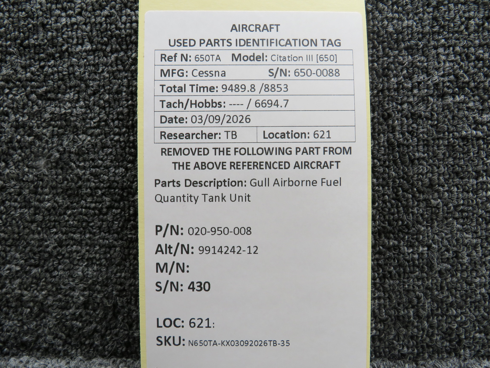Every part is carefully inspected throughout our process and several times before it goes online. Most items are sold as-removed, just as they came off the aircraft. These parts are not functionally tested. What we do provide is clear photos, full traceability when available, pricing that reflects the as-removed condition, and a no-nonsense 90-day return window.