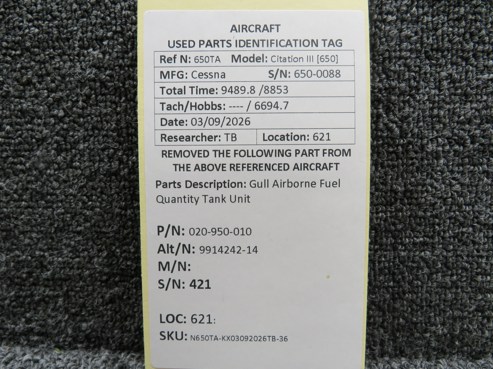 Every part is carefully inspected throughout our process and several times before it goes online. Most items are sold as-removed, just as they came off the aircraft. These parts are not functionally tested. What we do provide is clear photos, full traceability when available, pricing that reflects the as-removed condition, and a no-nonsense 90-day return window.