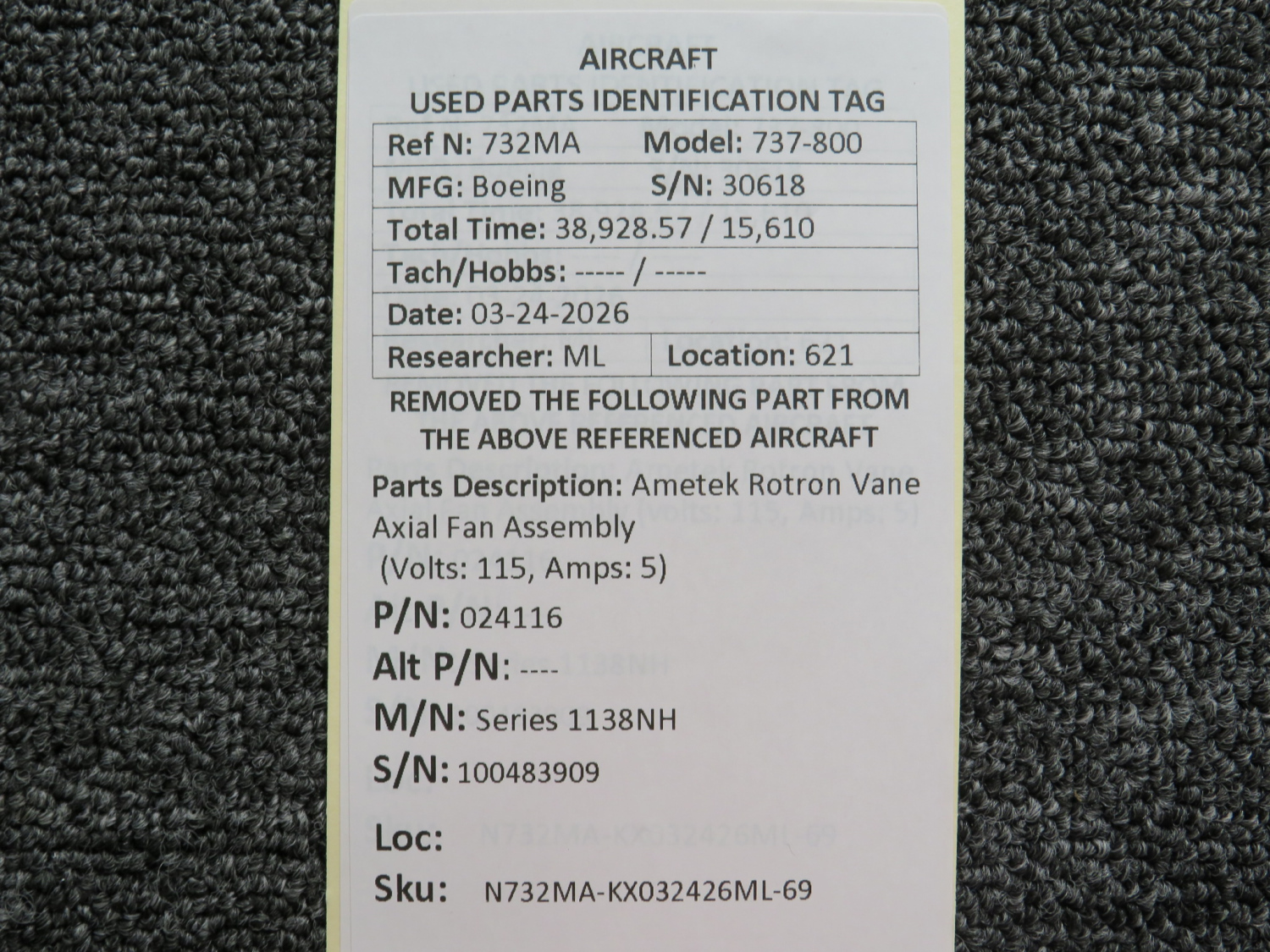 Every part is carefully inspected throughout our process and several times before it goes online. Most items are sold as-removed, just as they came off the aircraft. These parts are not functionally tested. What we do provide is clear photos, full traceability when available, pricing that reflects the as-removed condition, and a no-nonsense 90-day return window.