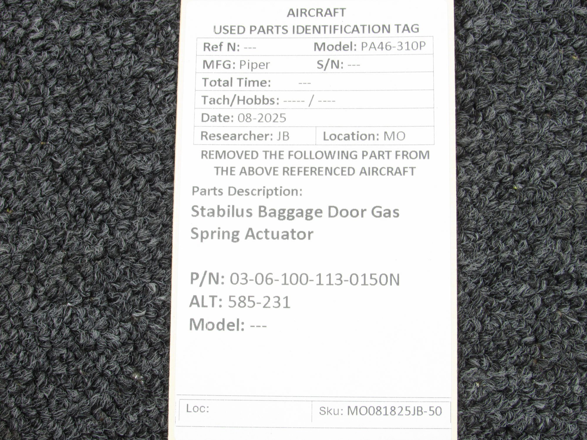 Unless specifically noted, most of our used airplane parts are sold in the condition they were removed, which means you should expect the usual signs of wear and tear.