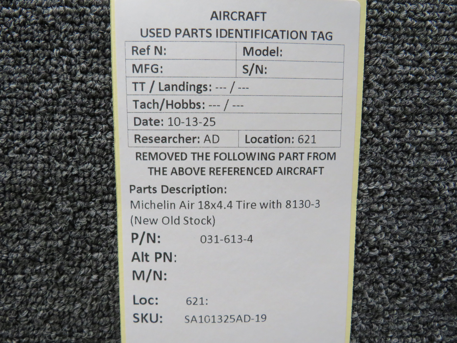- Inspected by Michelin Aircraft Tire Corp., New, 03/8/2004