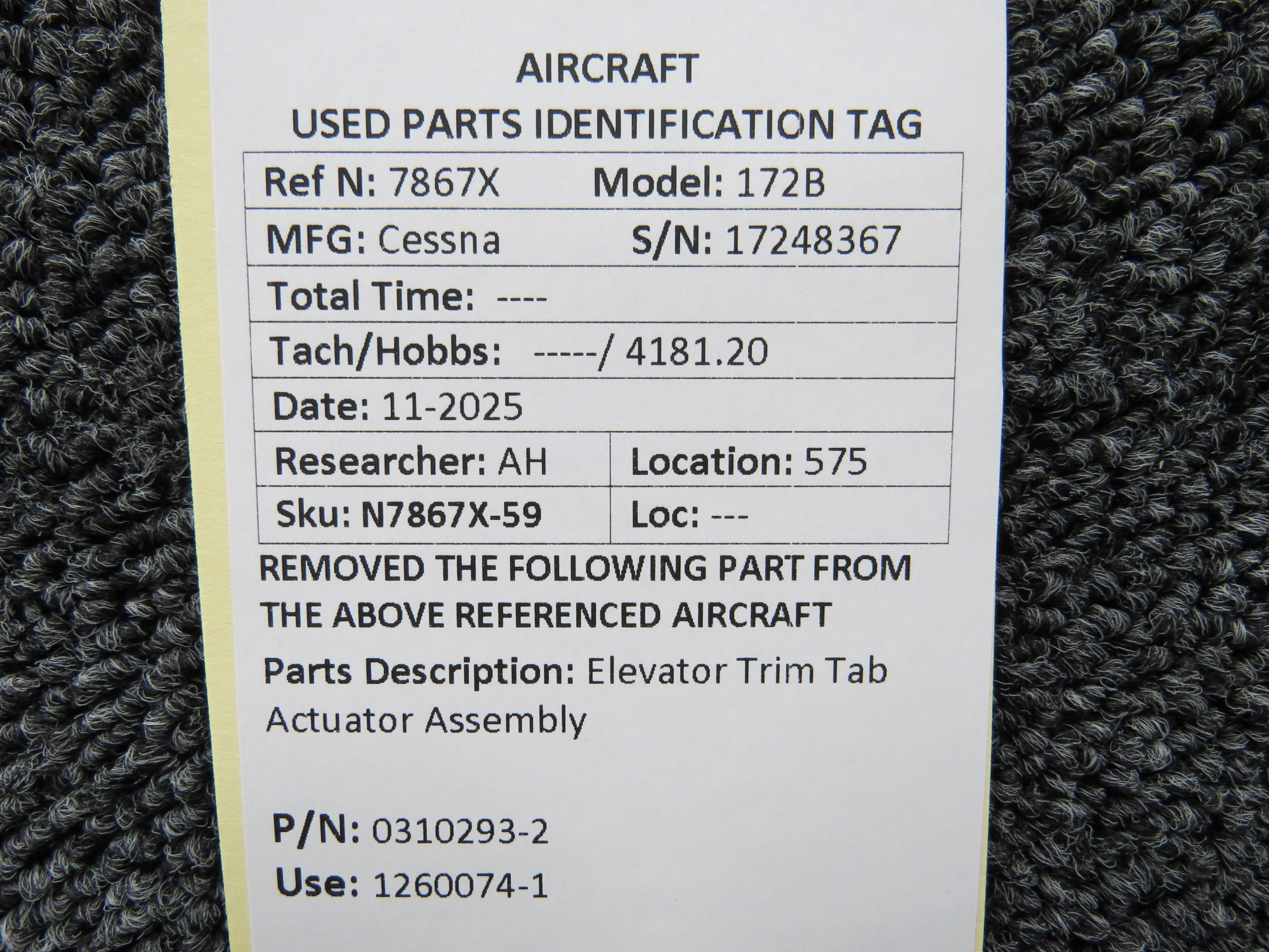 Unless specifically noted, most of our used airplane parts are sold in the condition they were removed, which means you should expect the usual signs of wear and tear.