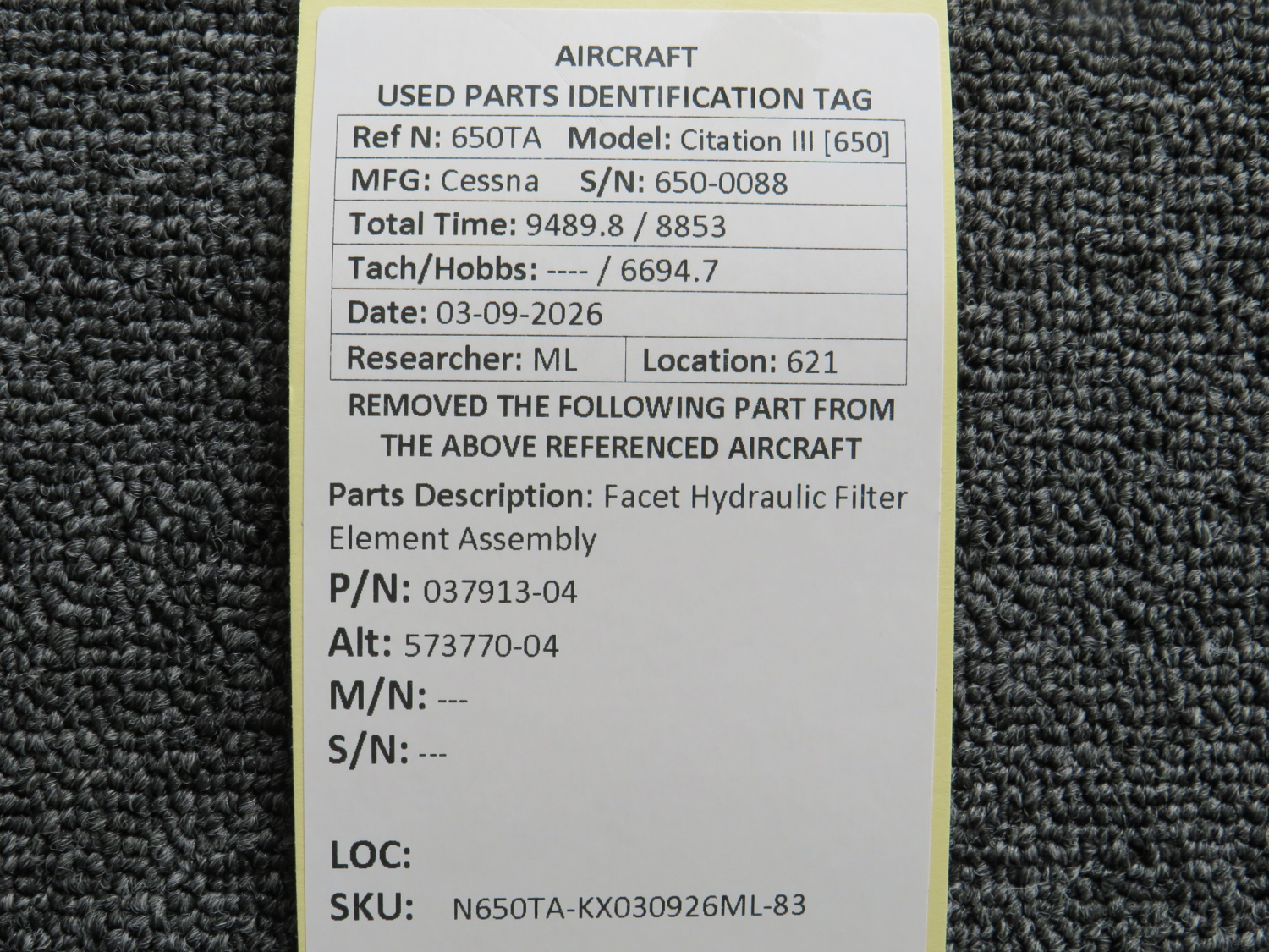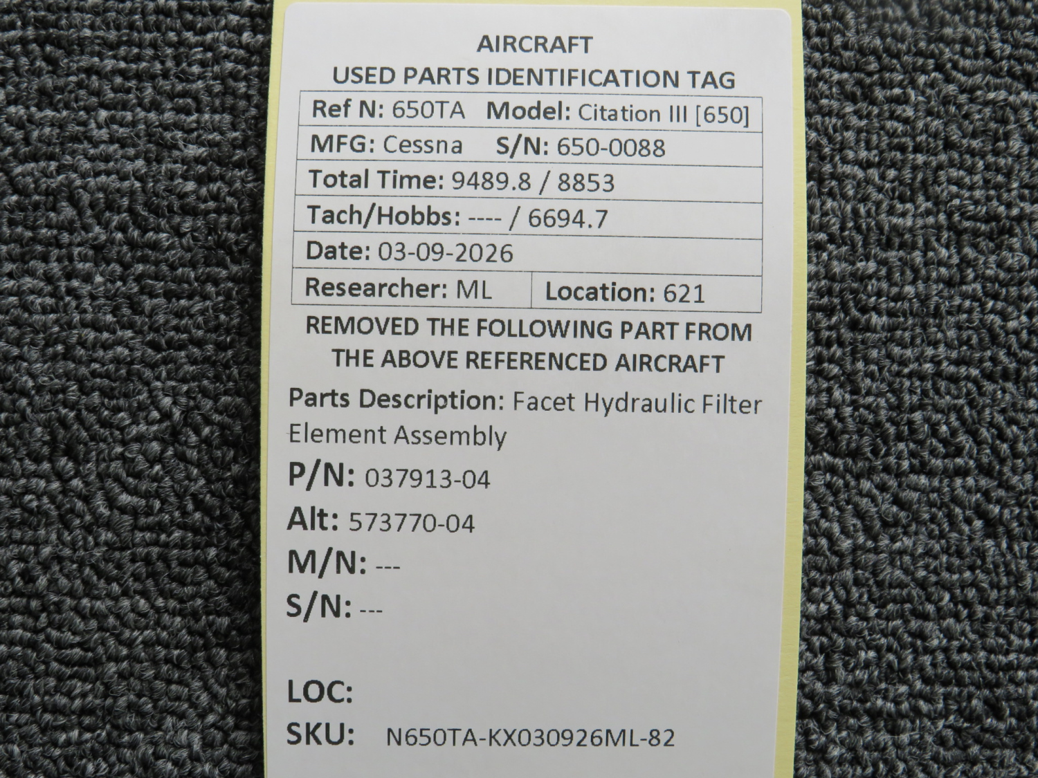 Every part is carefully inspected throughout our process and several times before it goes online. Most items are sold as-removed, just as they came off the aircraft. These parts are not functionally tested. What we do provide is clear photos, full traceability when available, pricing that reflects the as-removed condition, and a no-nonsense 90-day return window.
