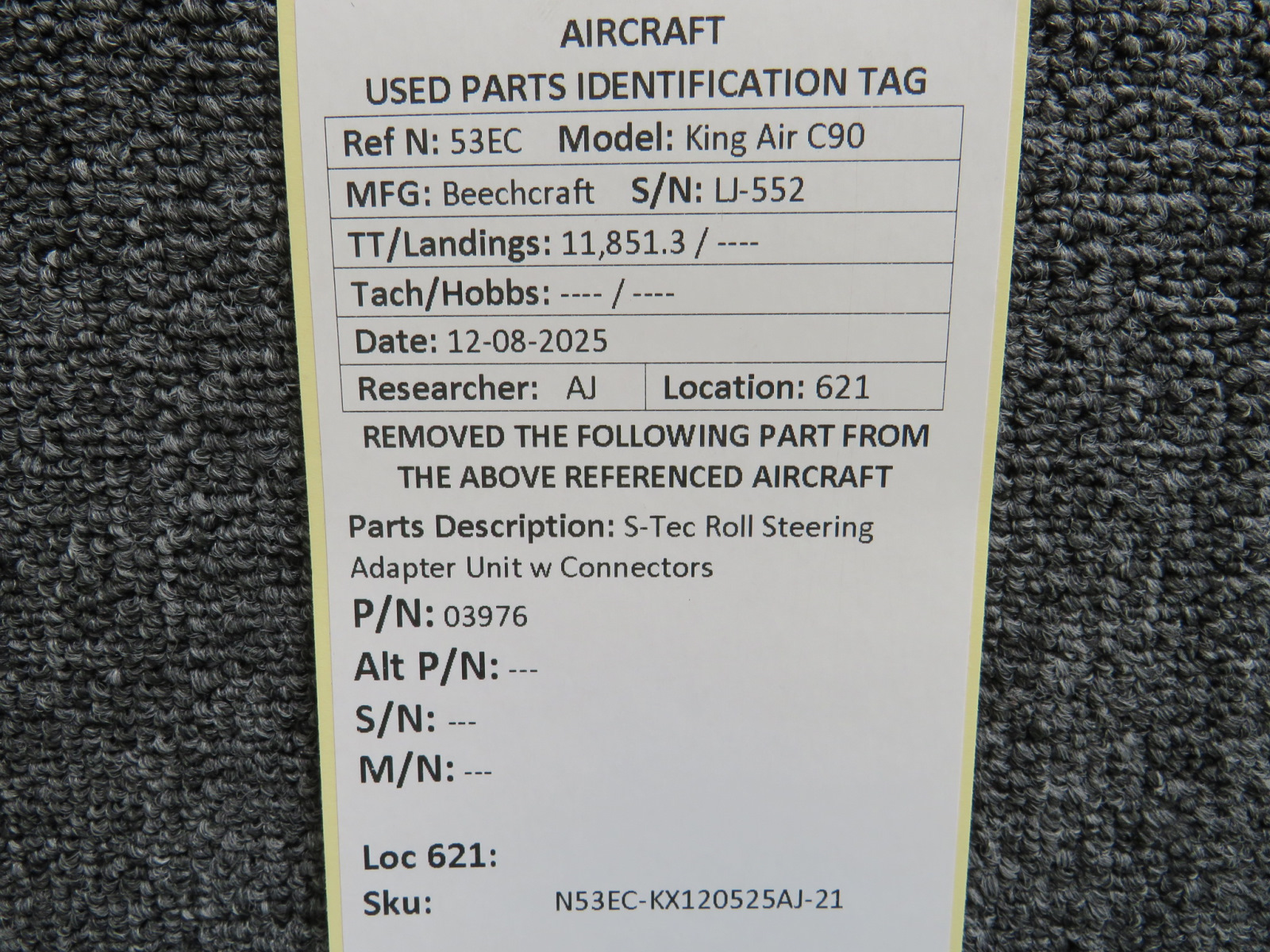 Unless specifically noted, most of our used airplane parts are sold in the condition they were removed, which means you should expect the usual signs of wear and tear.