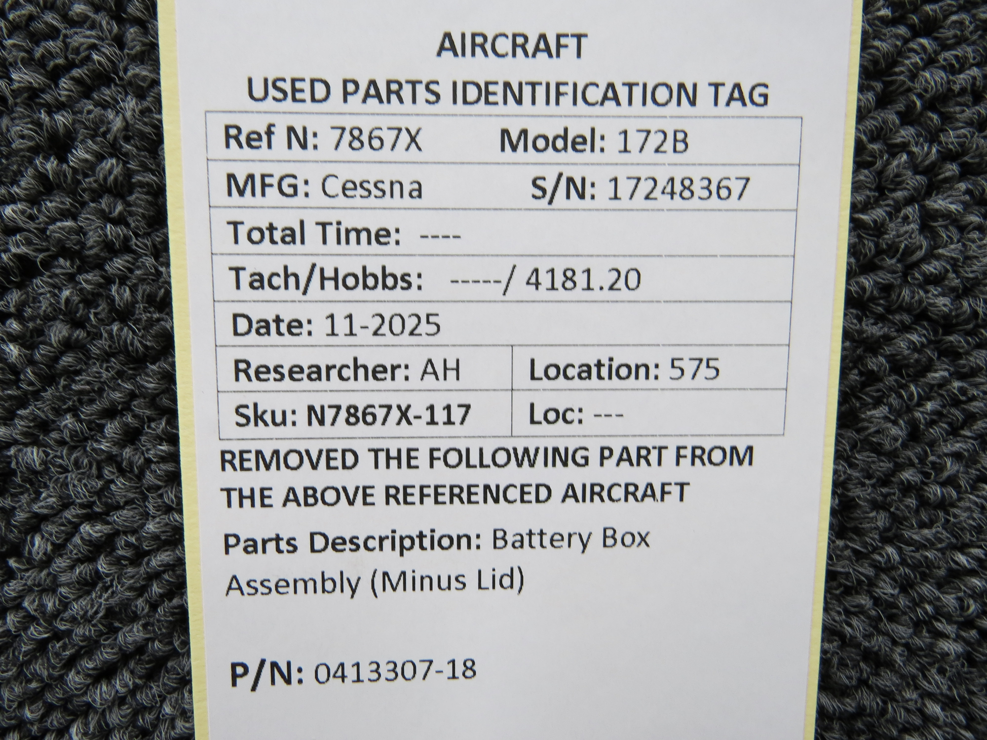 Unless specifically noted, most of our used airplane parts are sold in the condition they were removed, which means you should expect the usual signs of wear and tear.