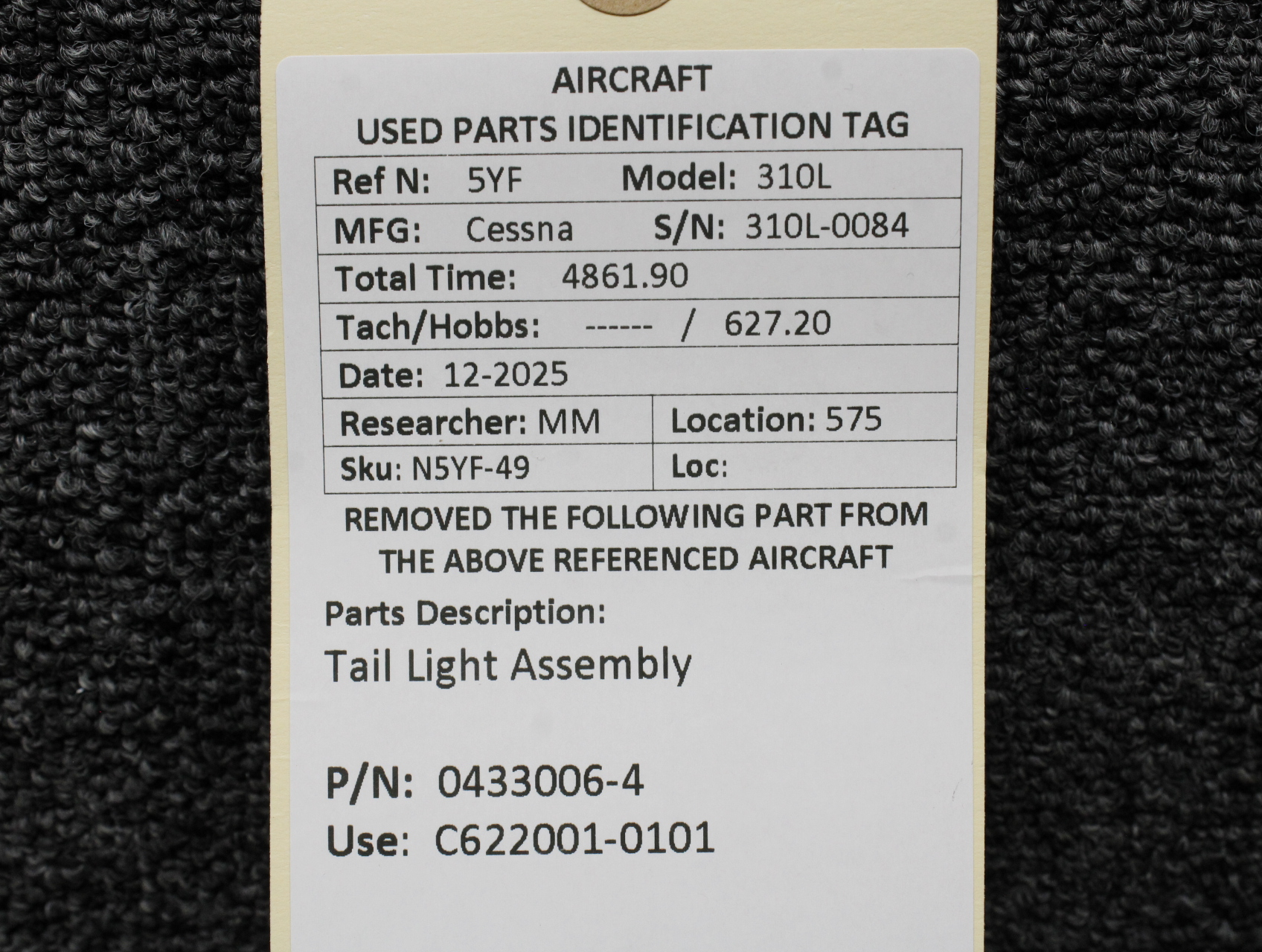 Unless specifically noted, most of our used airplane parts are sold in the condition they were removed, which means you should expect the usual signs of wear and tear.