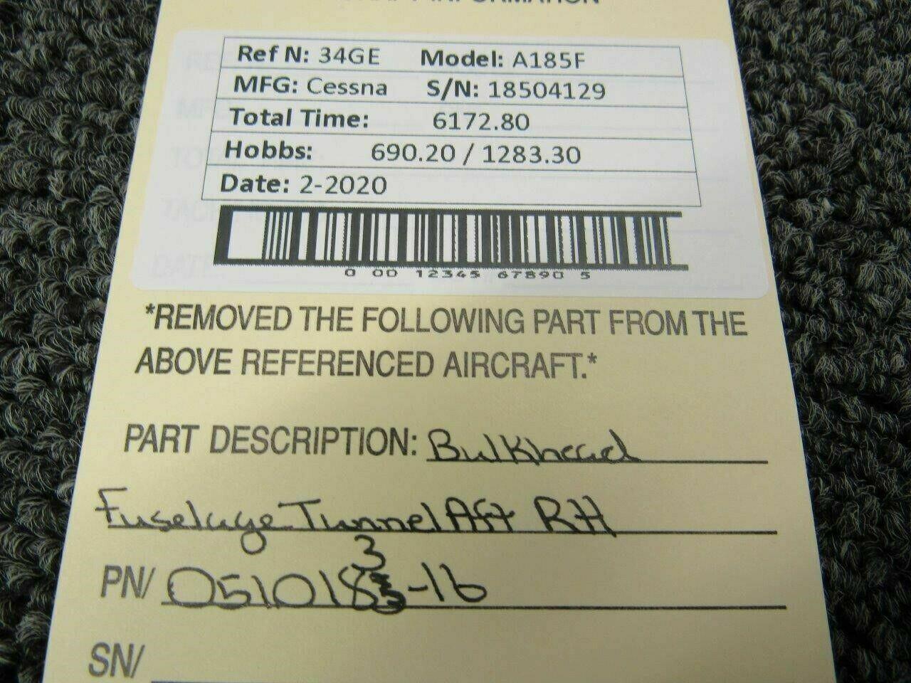 0510183-16 Cessna A185F Bulkhead Fuselage Tunnel Aft RH