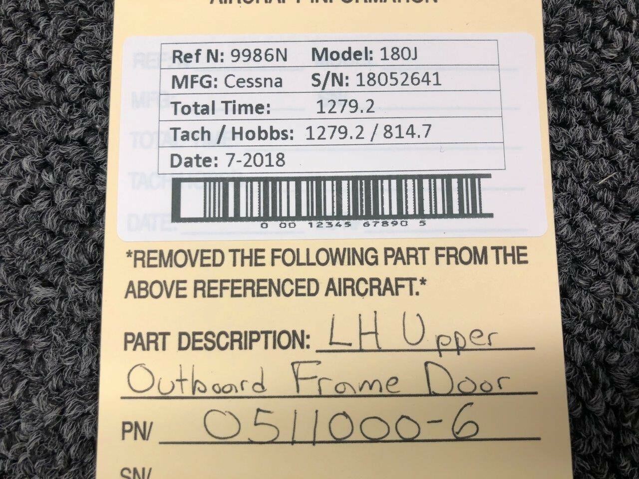 0511000-6 / 0511000-22 Cessna 180J LH Frame Door Upper Outboard