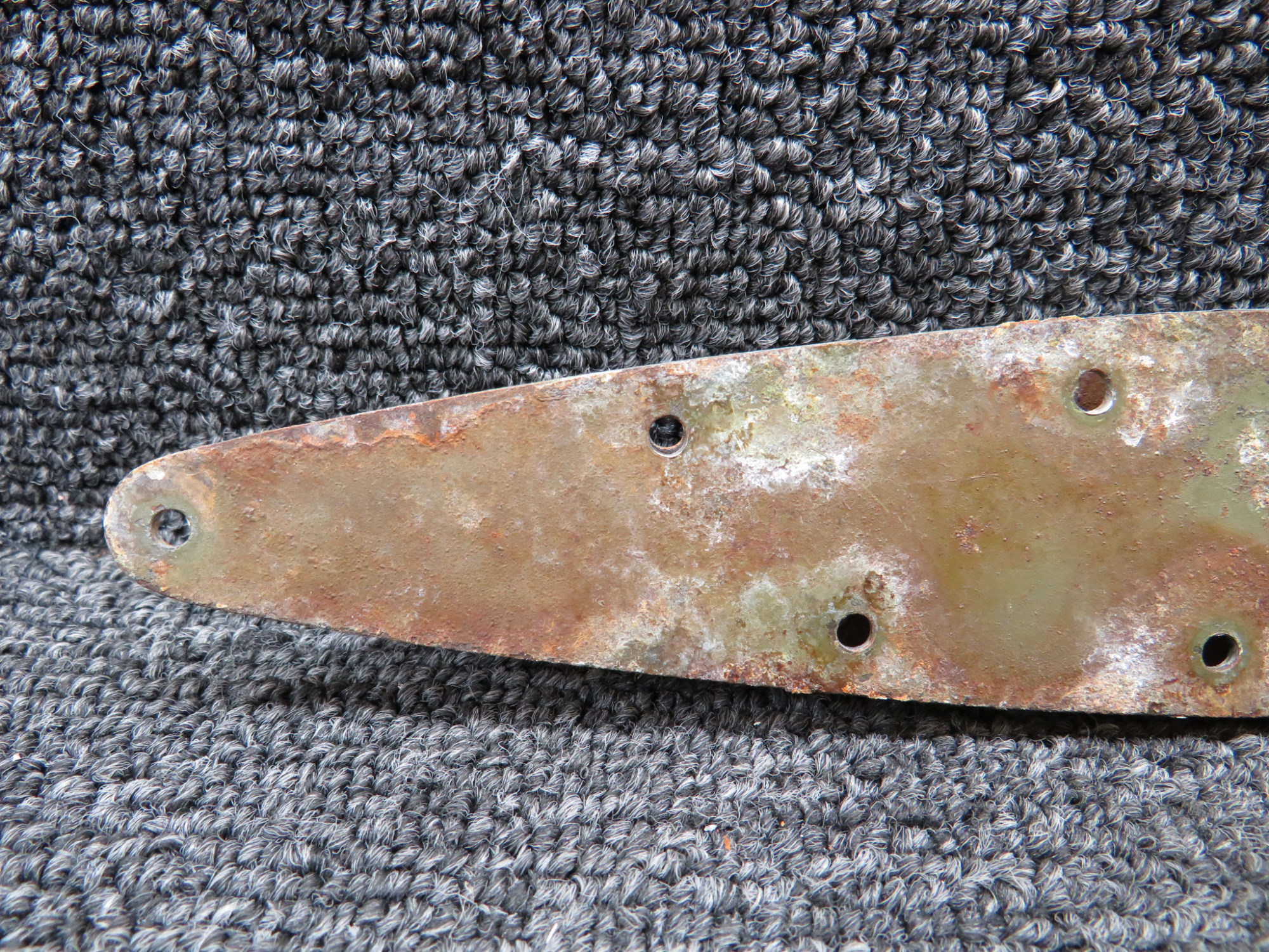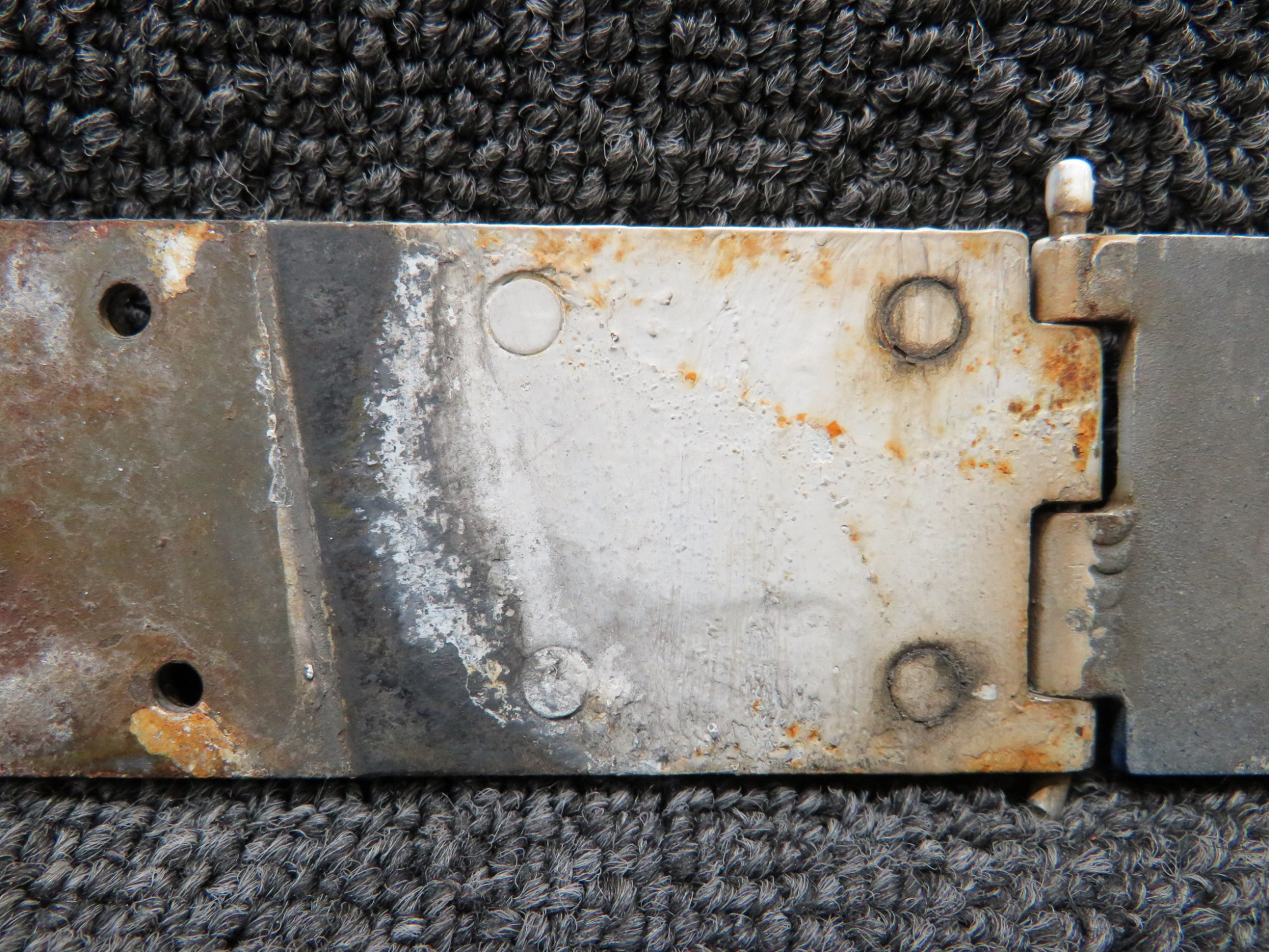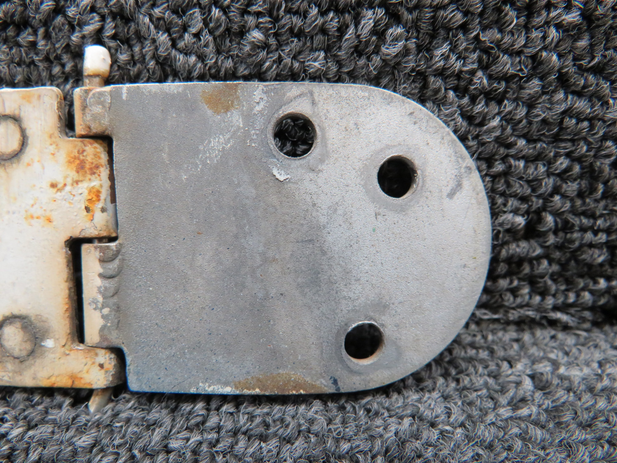 - Rust on the back side of the hinge and rust on the attached plate