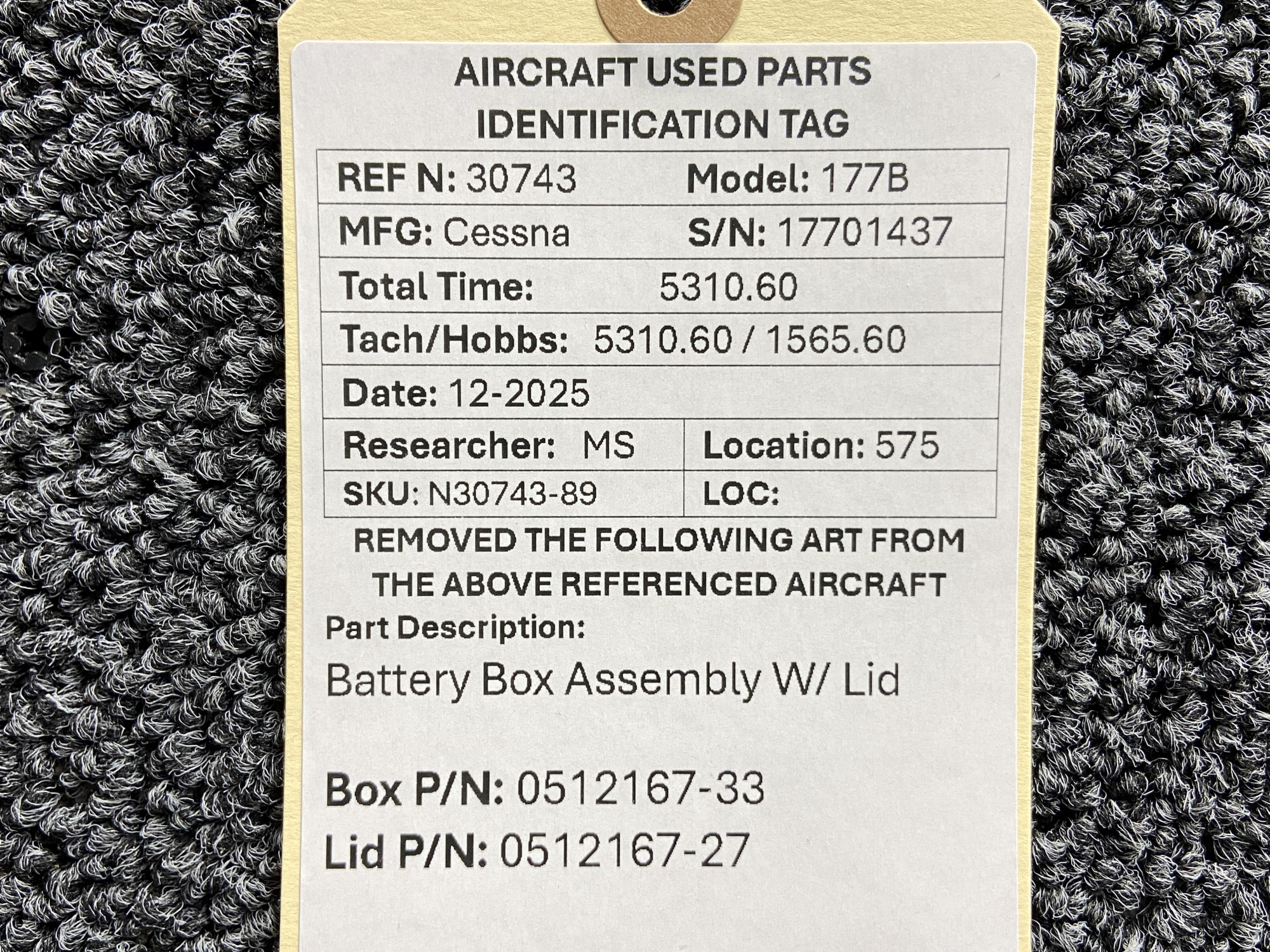 - Box Assembly Part Number: 0512167-33