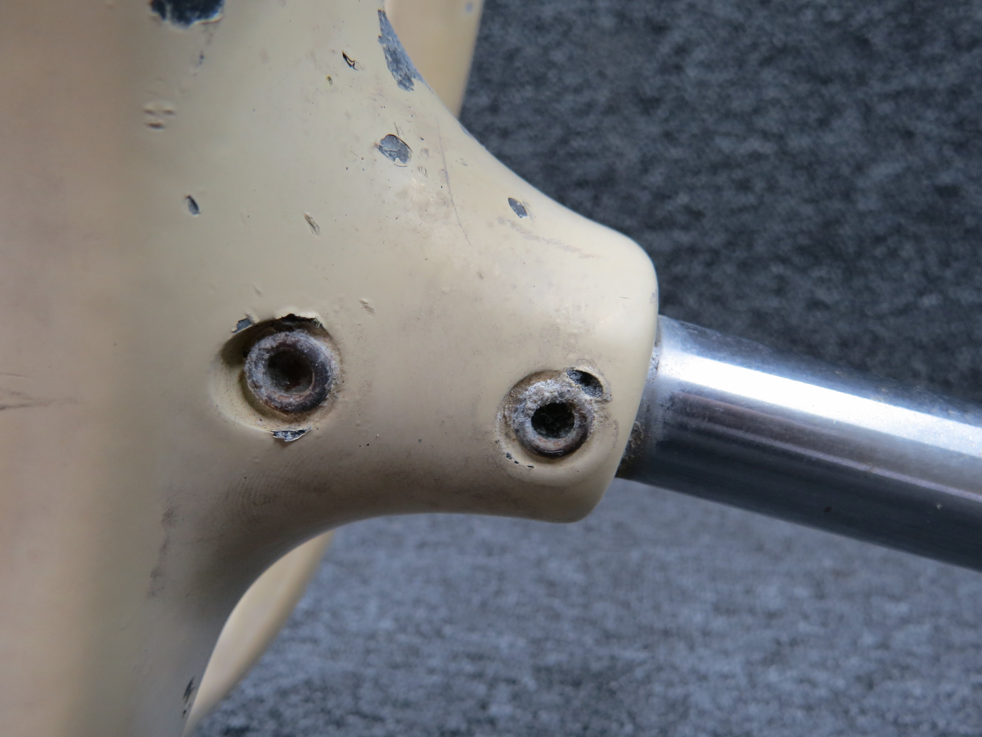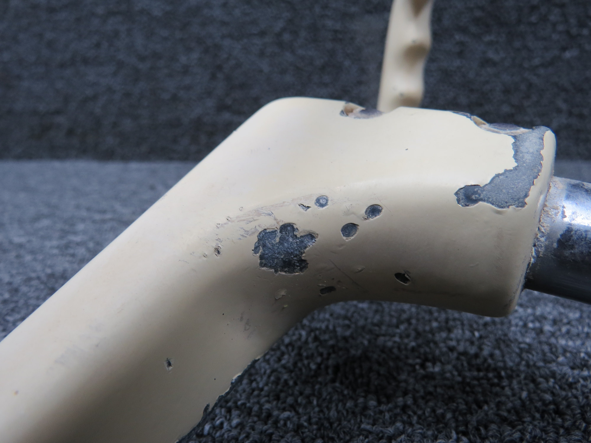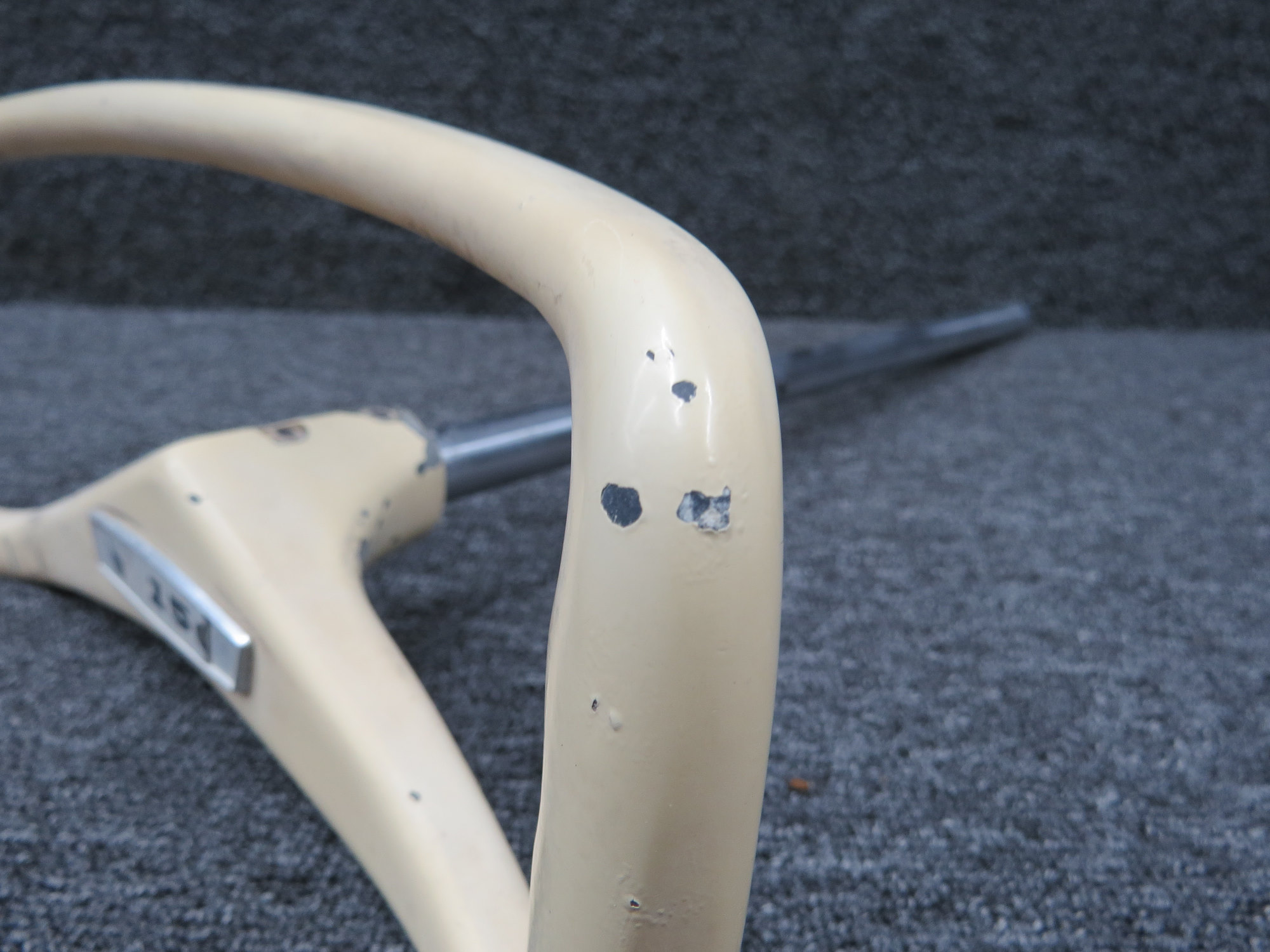 - There is minor corrosion on tube and bolts, scuffs/dings on wheel and worn paint
