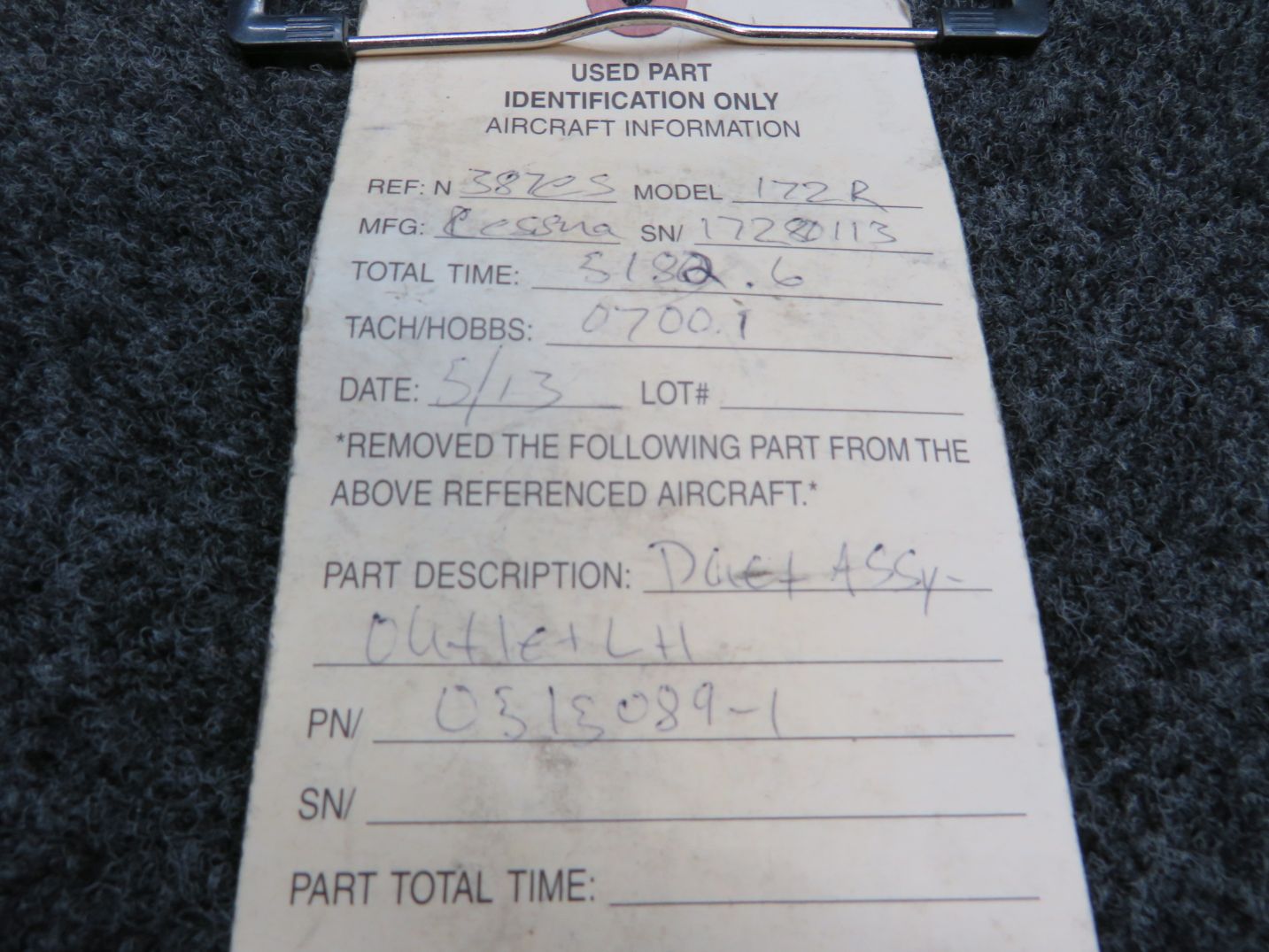 0515089-1 Cessna 172R Duct Assembly Outlet L/H