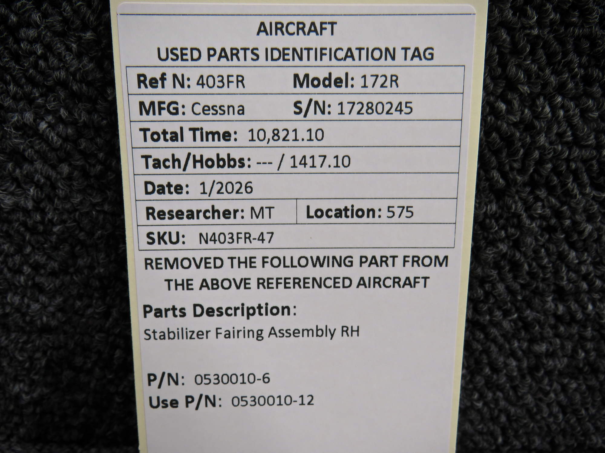Unless specifically noted, most of our used airplane parts are sold in the condition they were removed, which means you should expect the usual signs of wear and tear.