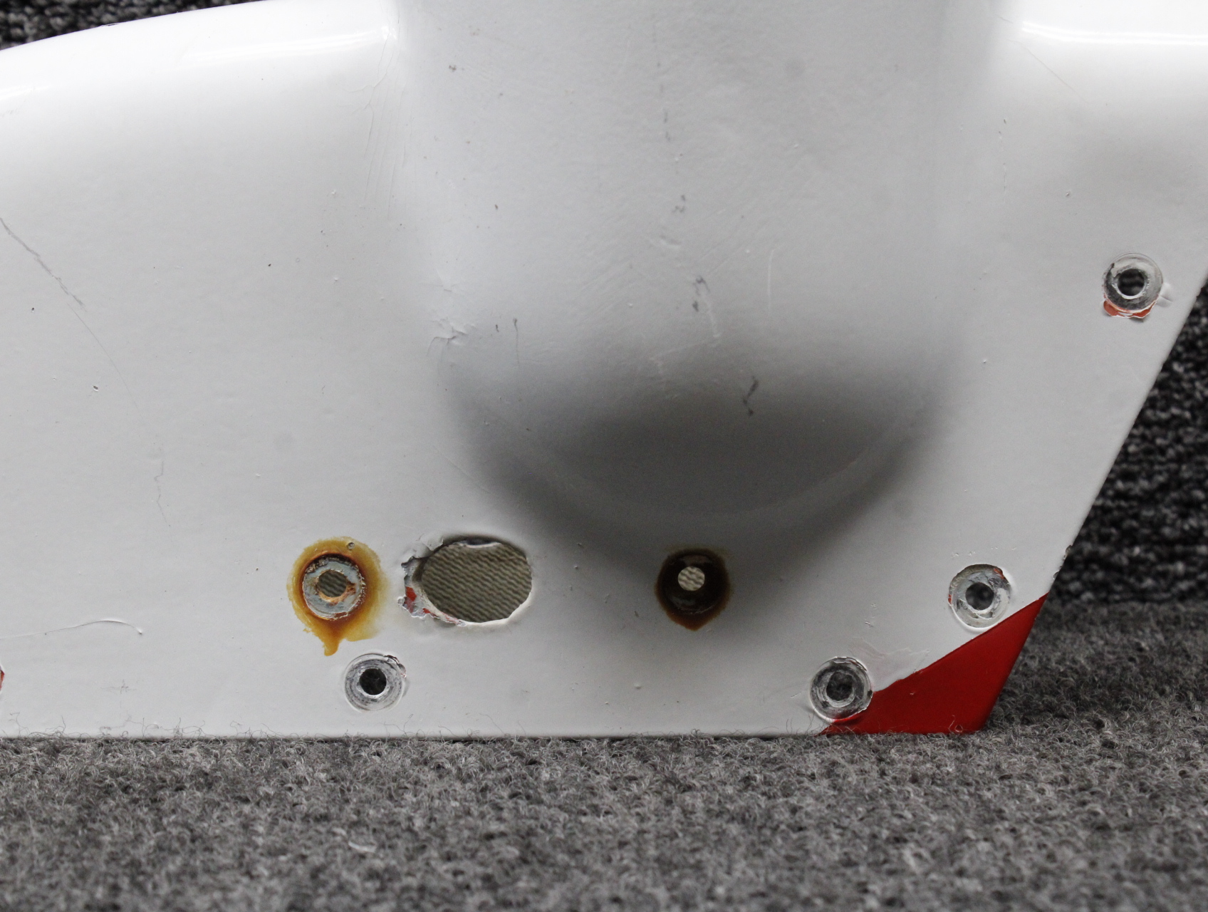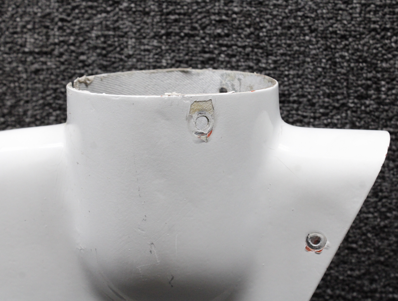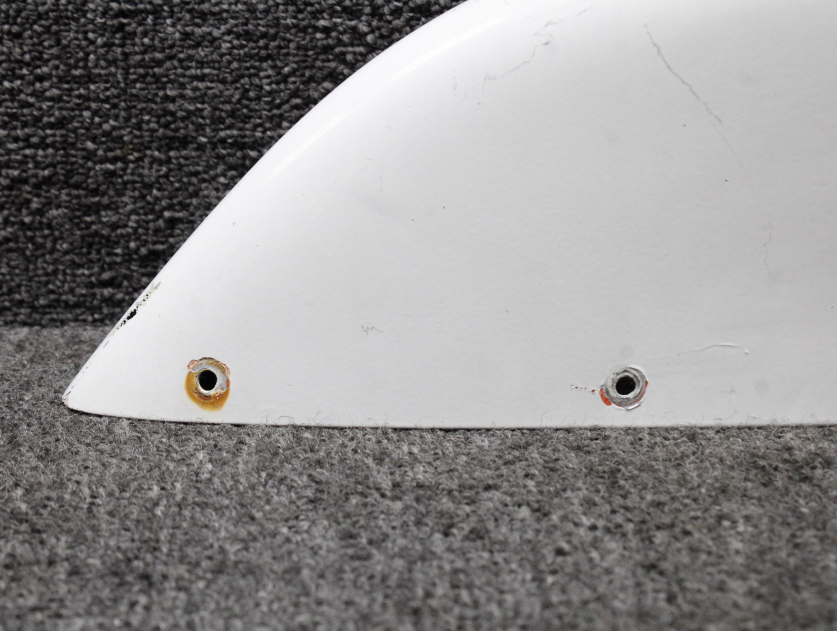 - Item has a damaged mount hole and a worn leading edge