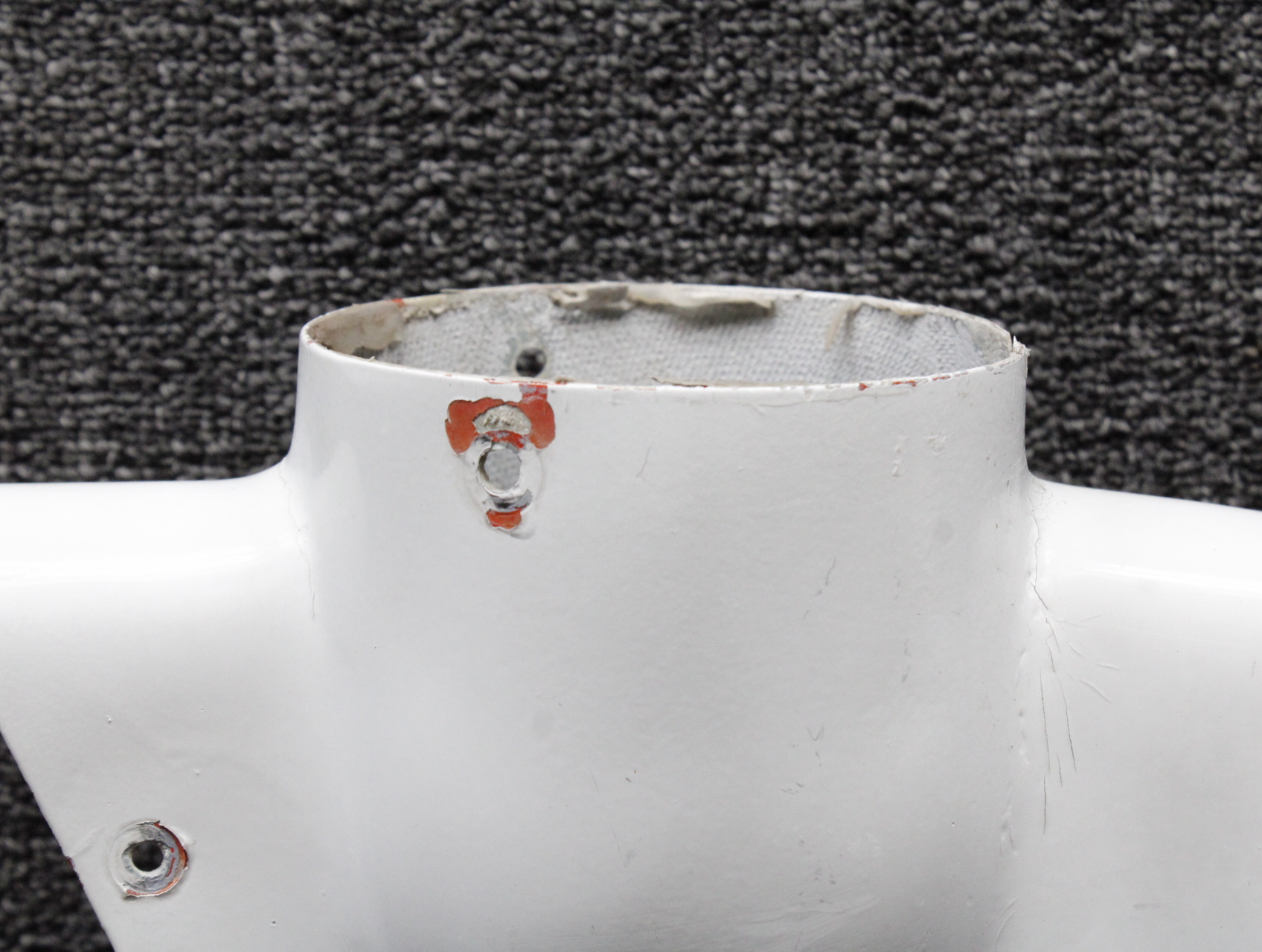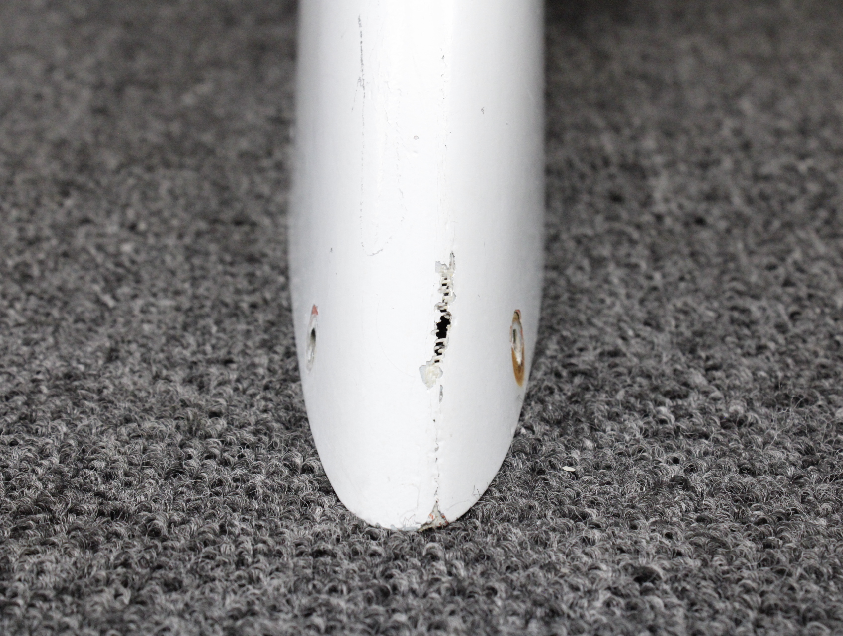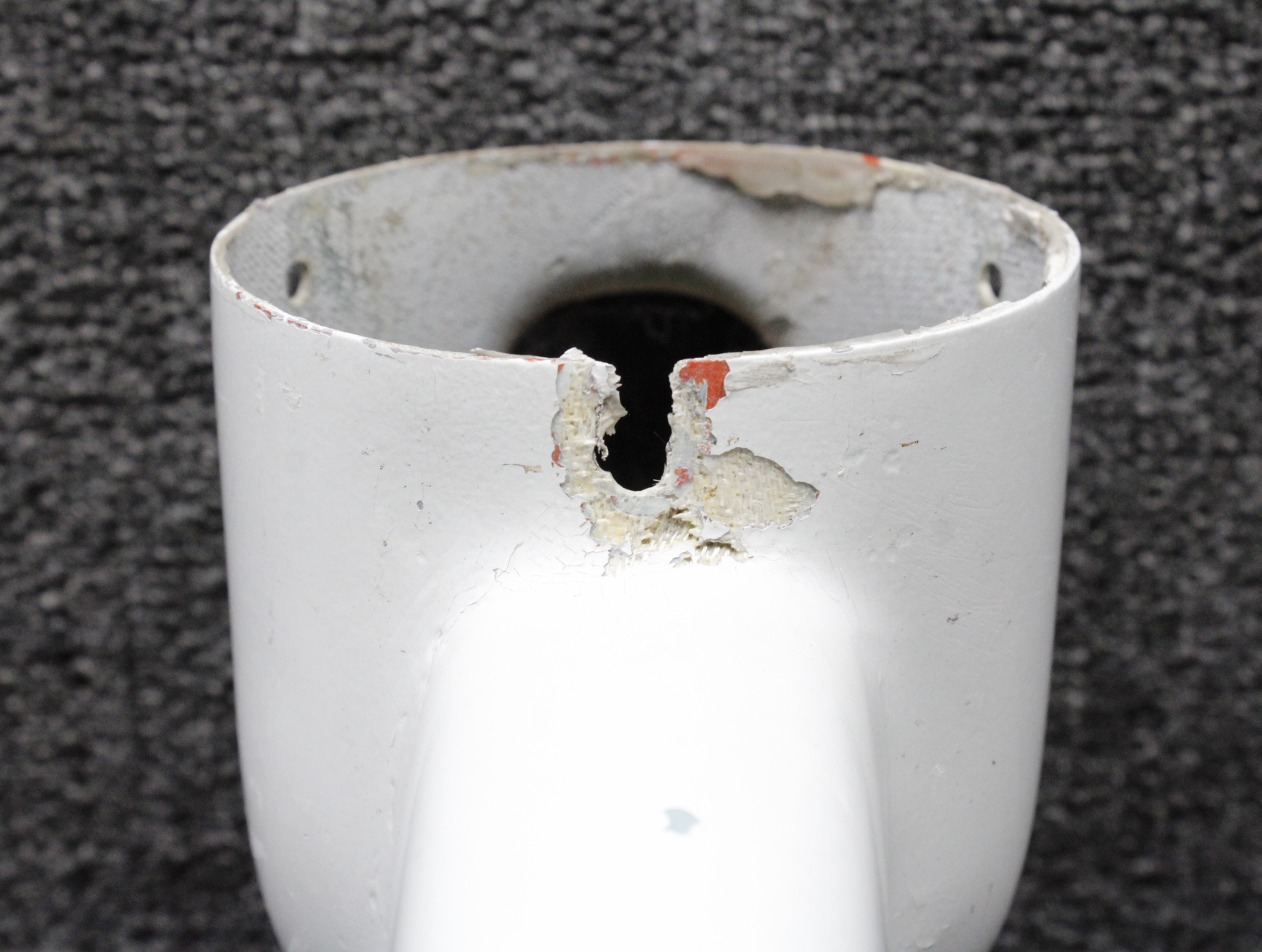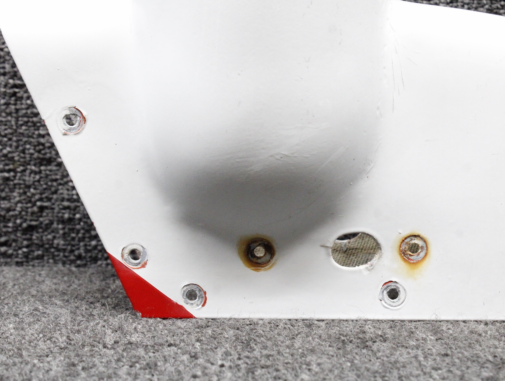 - Item has a damaged mount hole and a worn leading edge