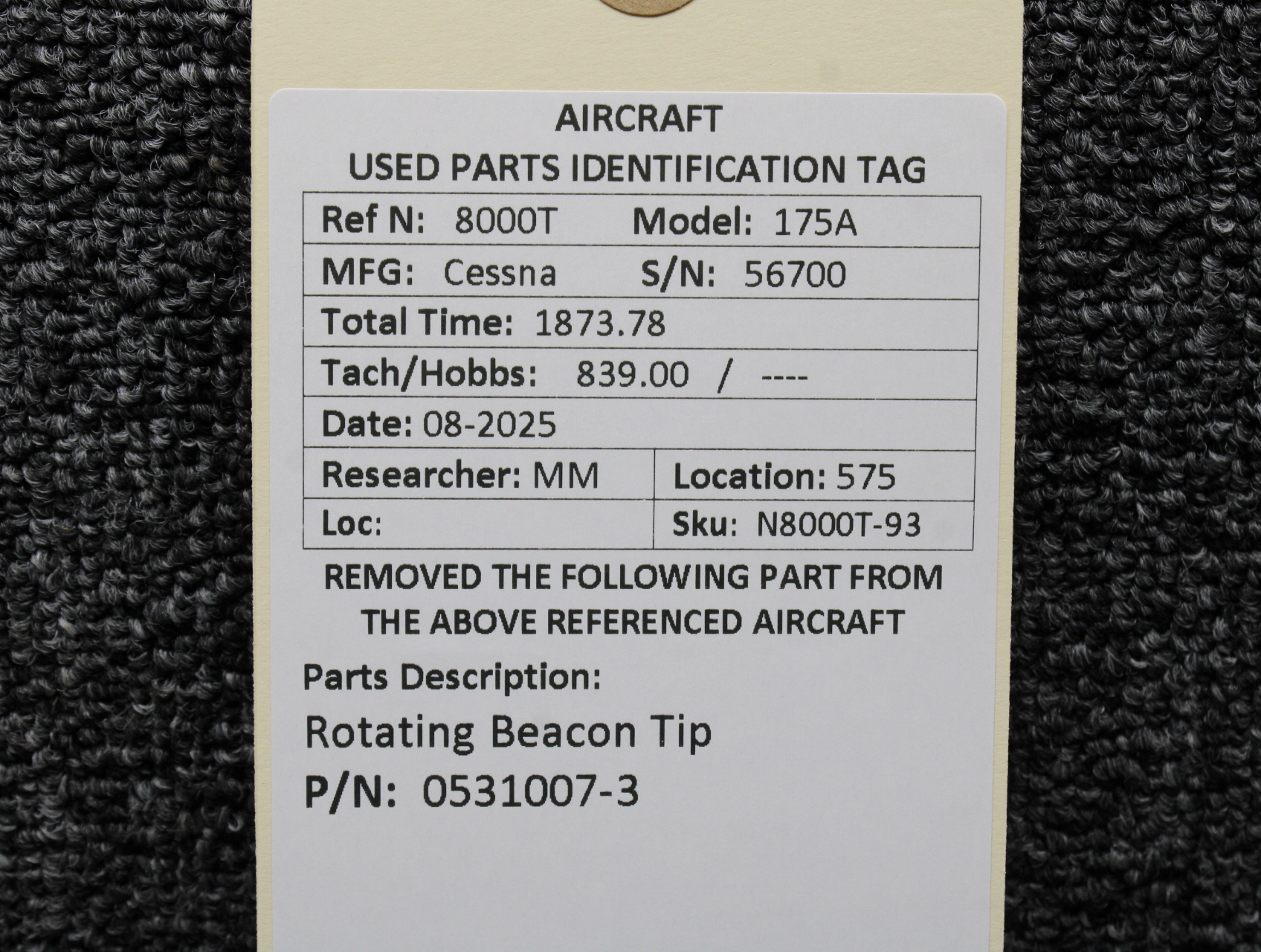 Unless specifically noted, most of our used airplane parts are sold in the condition they were removed, which means you should expect the usual signs of wear and tear.