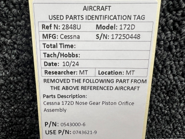 Attention International Buyers: We routinely export aircraft parts to destinations around the world. All import duties, taxes, and any other charges related to importing parts to your country are not included in the price of the item or shipping charges, these are 100% the responsibility of the buyer. Please check with your country's customs office to help determine what these additional costs will be prior to purchasing. We do not mark merchandise value below purchase value nor mark items as "gifts" as both U.S. and international law strictly prohibits this. We do not ship to forwarding shipping stations. A business or residential address is required for delivery.