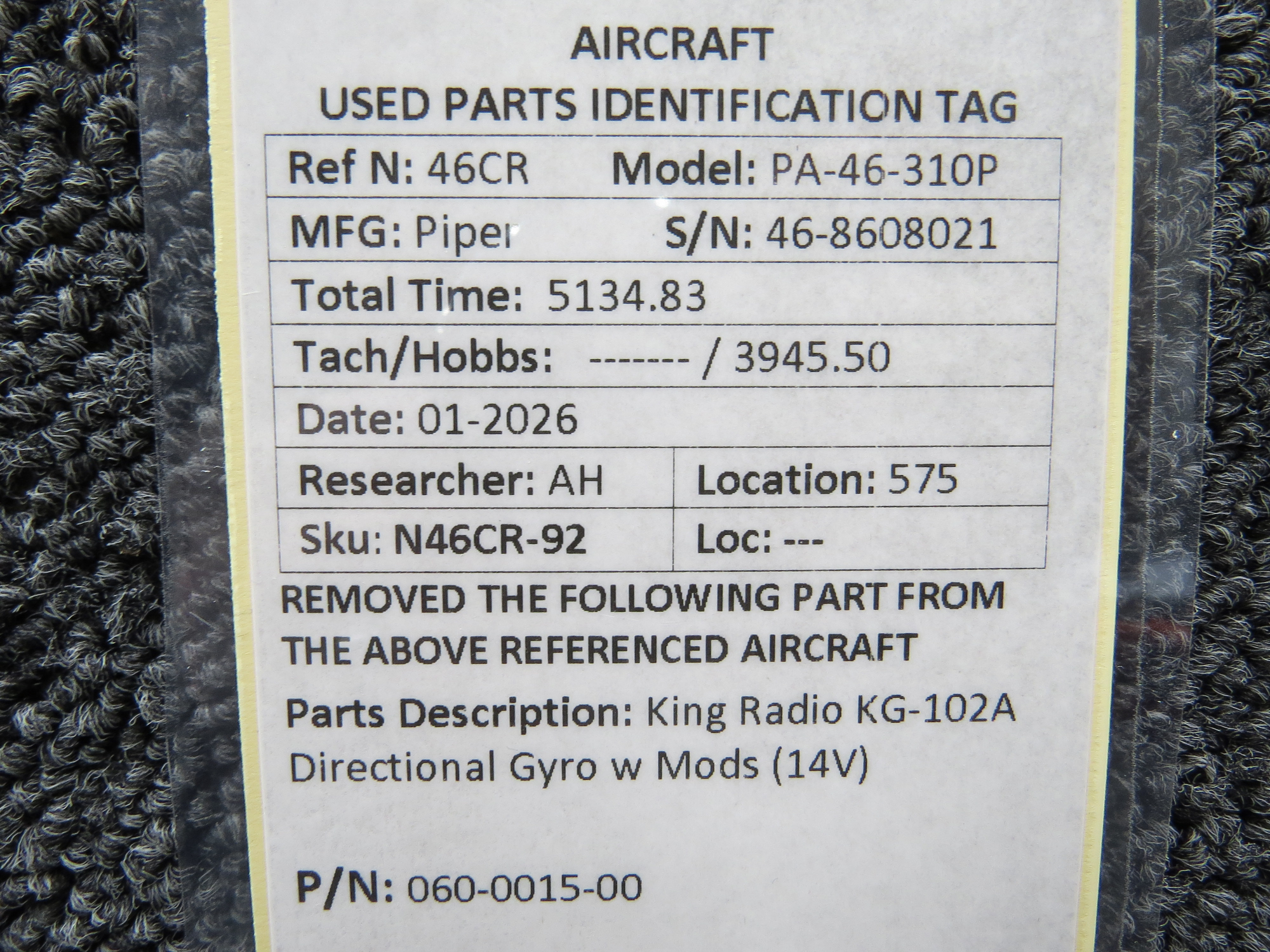 Unless specifically noted, most of our used airplane parts are sold in the condition they were removed, which means you should expect the usual signs of wear and tear.