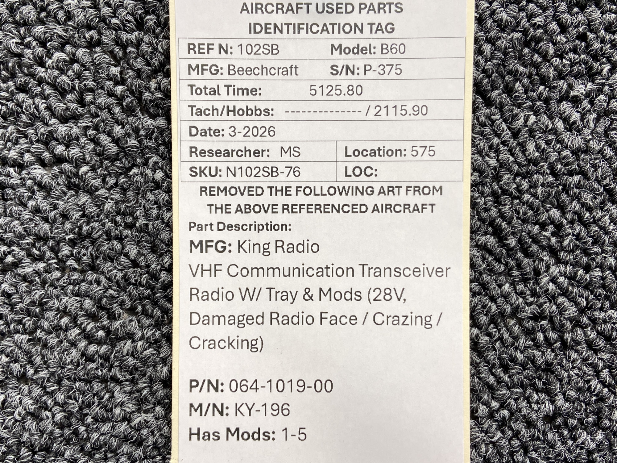 Every part is carefully inspected throughout our process and several times before it goes online. Most items are sold as-removed, just as they came off the aircraft. These parts are not functionally tested. What we do provide is clear photos, full traceability when available, pricing that reflects the as-removed condition, and a no-nonsense 90-day return window.